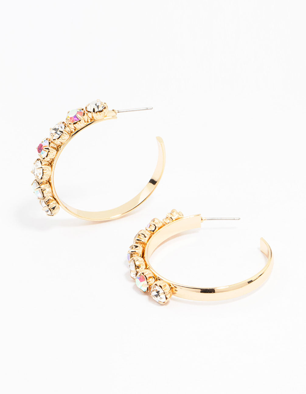 Gold Round Diamante Medium Hoop Earrings