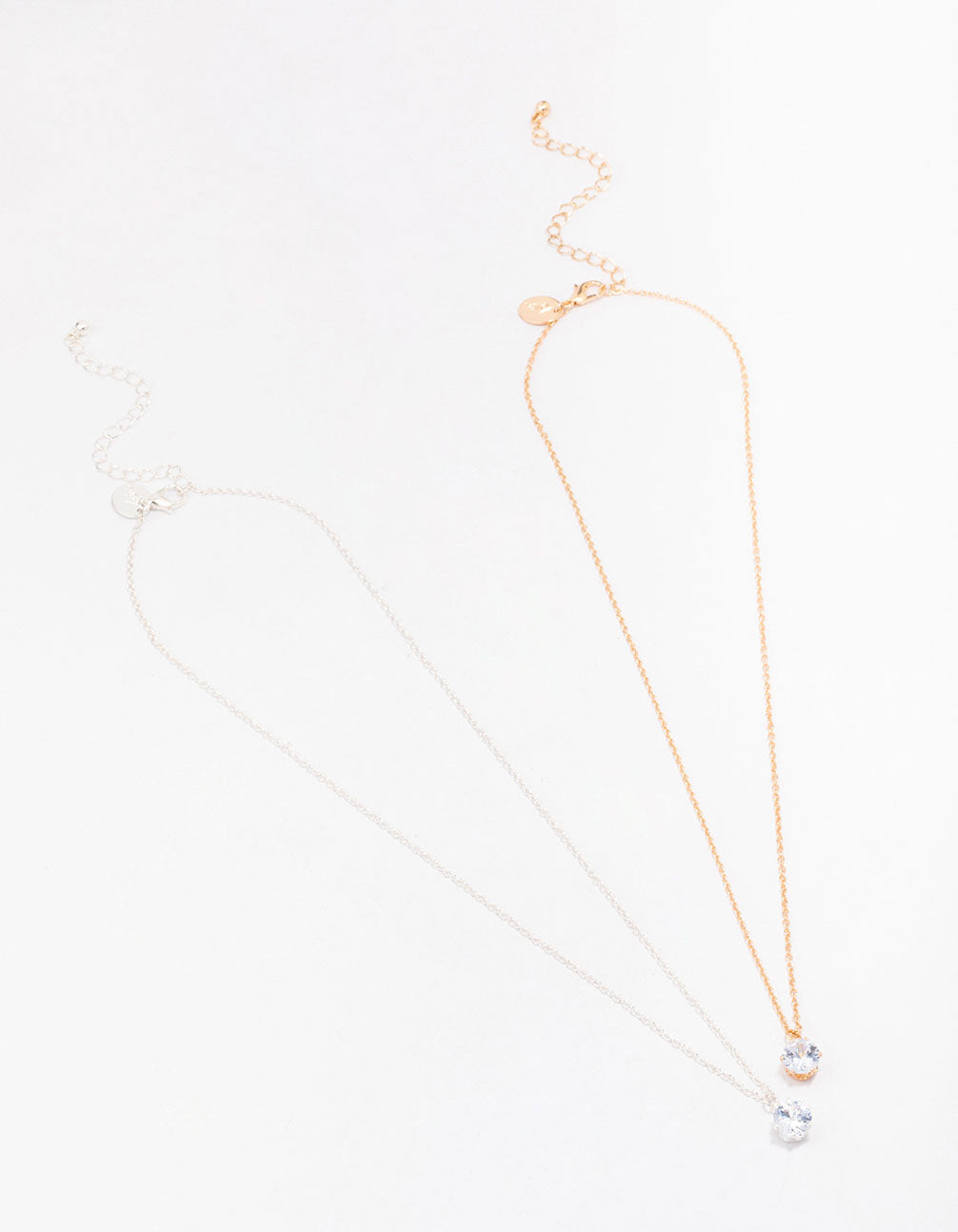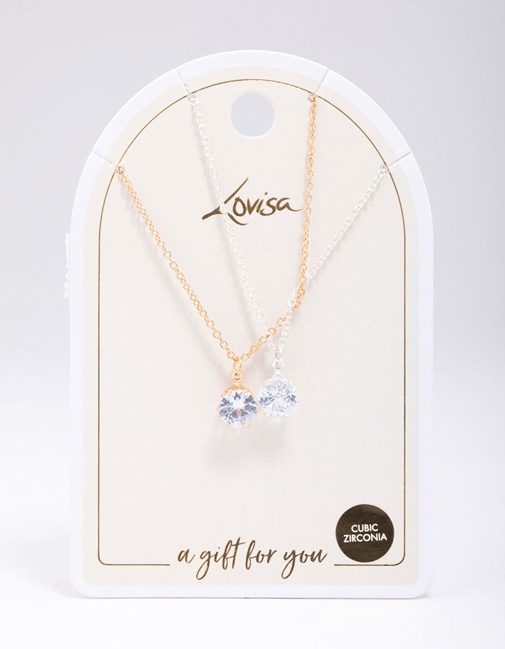 Gold & Silver Mixed Metal Solitaire Crystal Necklaces 2-Pack Gold & Silver Mixed Metal Solitaire Crystal Necklaces 2-Pack Gold & Silver Mixed Metal Solitaire Crystal Necklaces 2-Pack