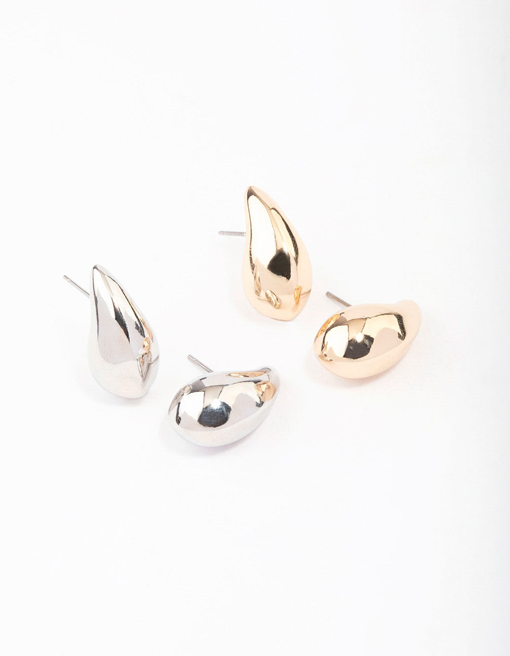 Teardrop earrings are the silhouette of the season! Style the trend yourself with this set of gold and silver bubble earrings, designed with a tapered point at the top.