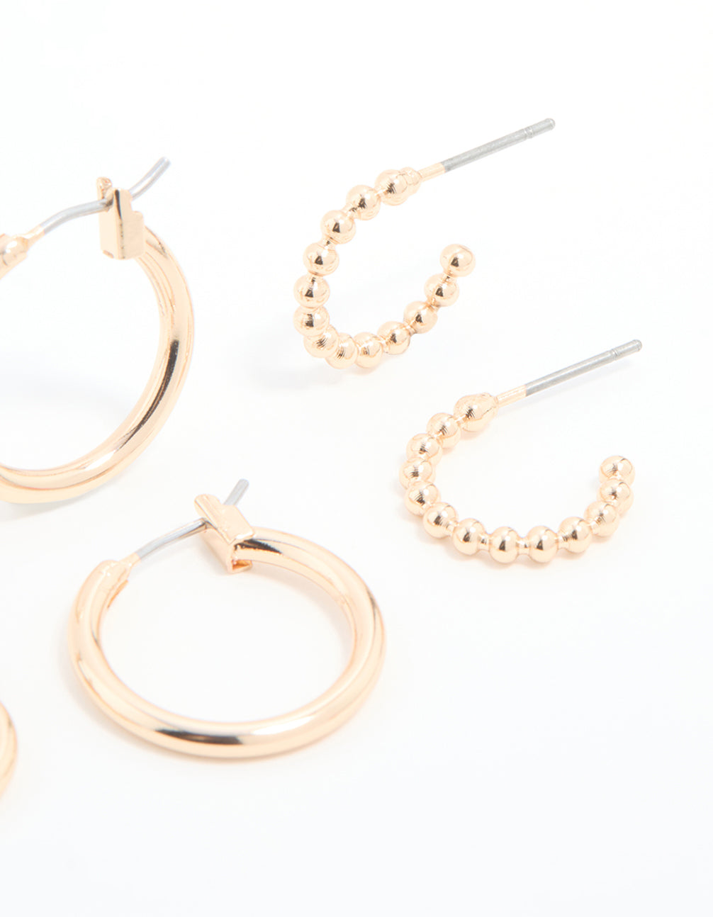 Gold Sleek & Bubble Hoop Earrings 3-Pack