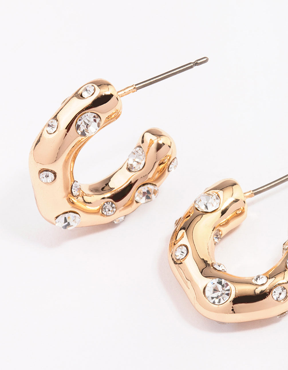 Gold Textured Diamante Hoop Earrings Gold Textured Diamante Hoop Earrings Gold Textured Diamante Hoop Earrings