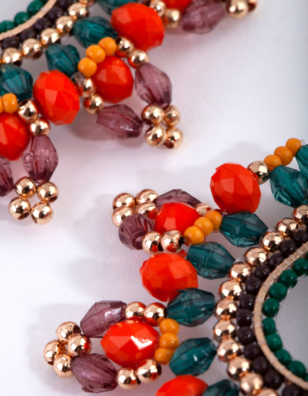 Let out your inner earth child with these funky drops! They're gold toned and feature a teardrop design with colourful beaded embellishments in a mix of earthy tones. Wear them with bold colours or lace for a free-spirited look.
