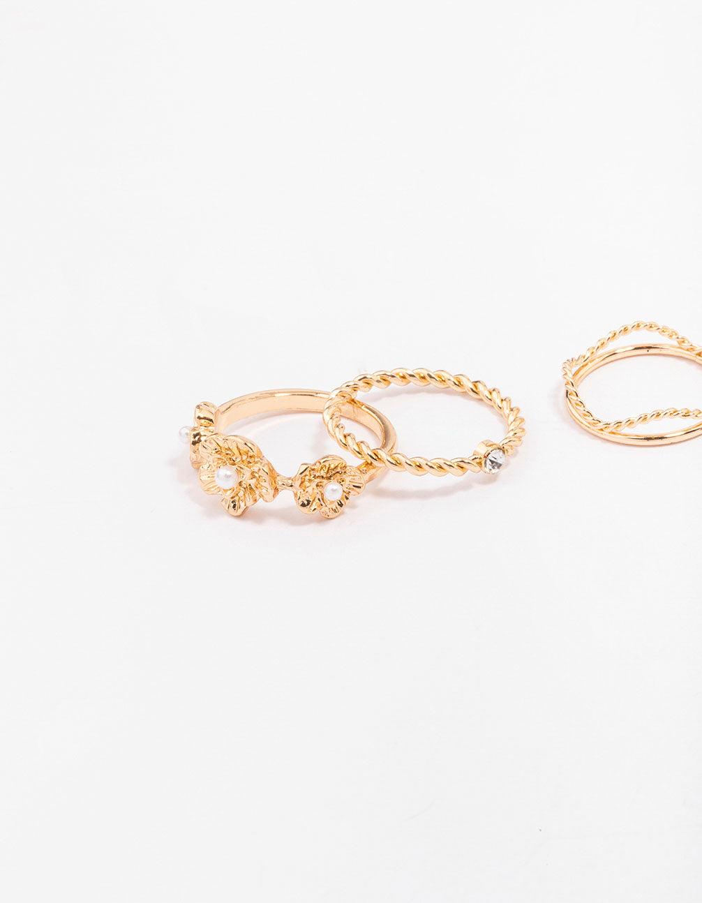 • Gold Twisted Flower Stacking Rings 6- Pack - link has visual effect only