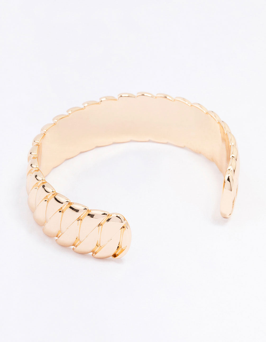 Level up your stack with this gorgeous, gold-toned wrist cuff. This cuff features a bold, chunky silhouette with a ribbed textured finish. Perfect for elevating any outfit!