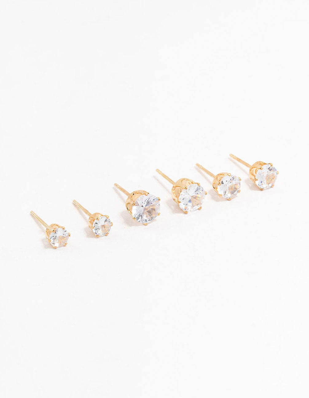 Gold Graduating Diamante Stud Earrings 3-Pack