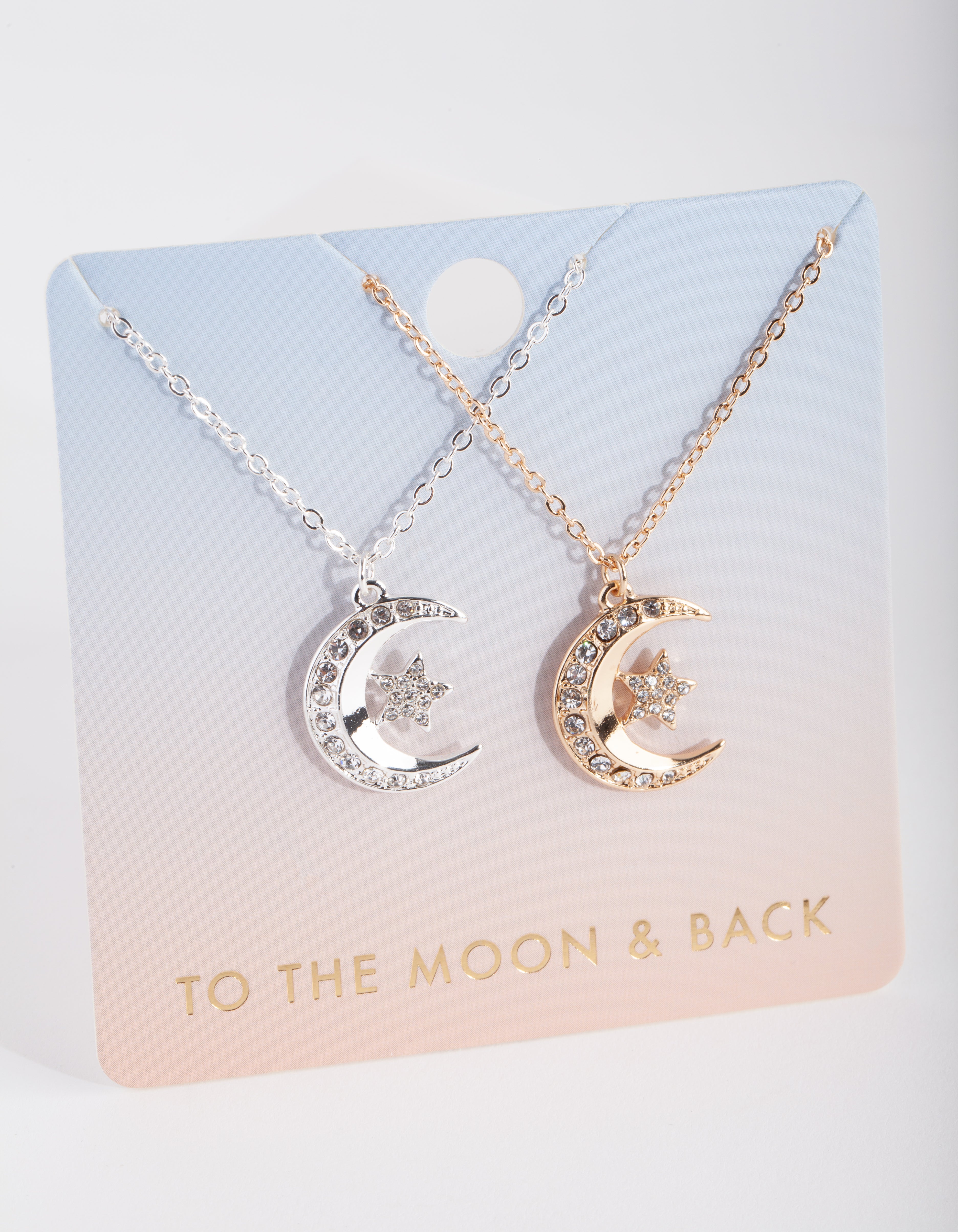 Shareable, giftable and packed in pretty packaging. Lovisa gift-boxes take the stress out of gift giving. This mixed metal set comes with two necklaces with diamante crescent moon designs. This is the perfect gift for that special someone!
