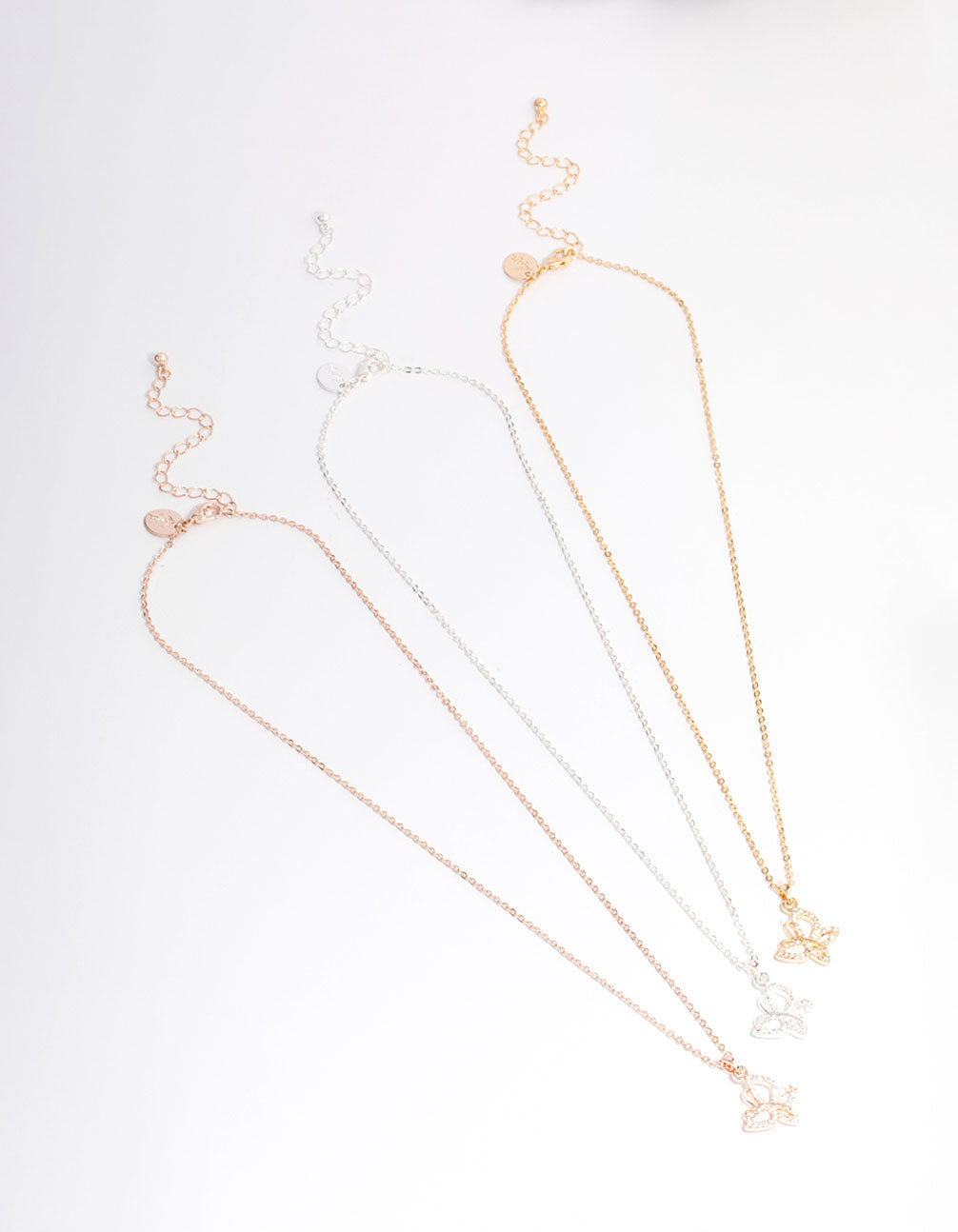 Mixed Metal Diamante Butterfly Necklace 3-Pack