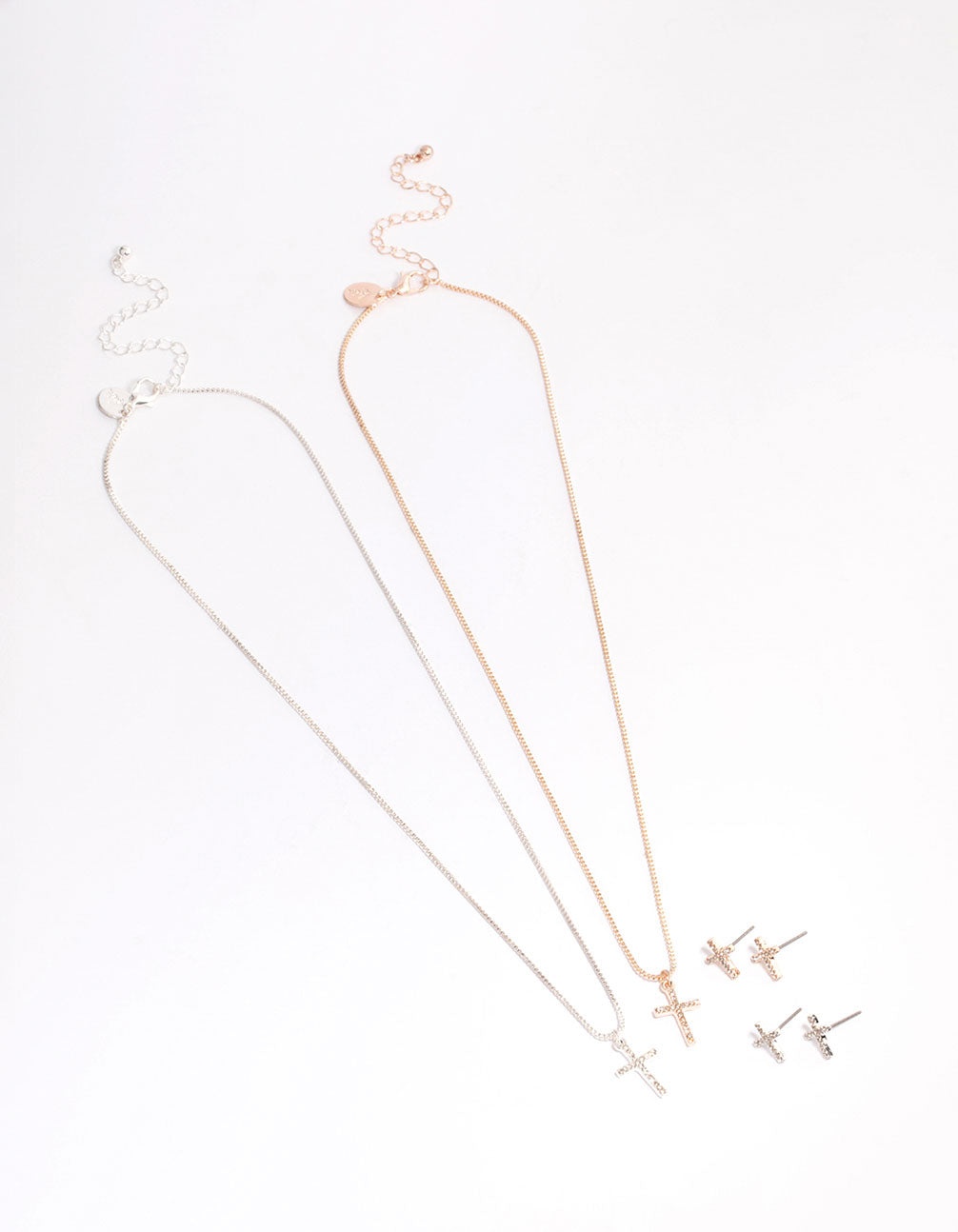 Mixed Metal Diamante Cross Jewellery Set Pack