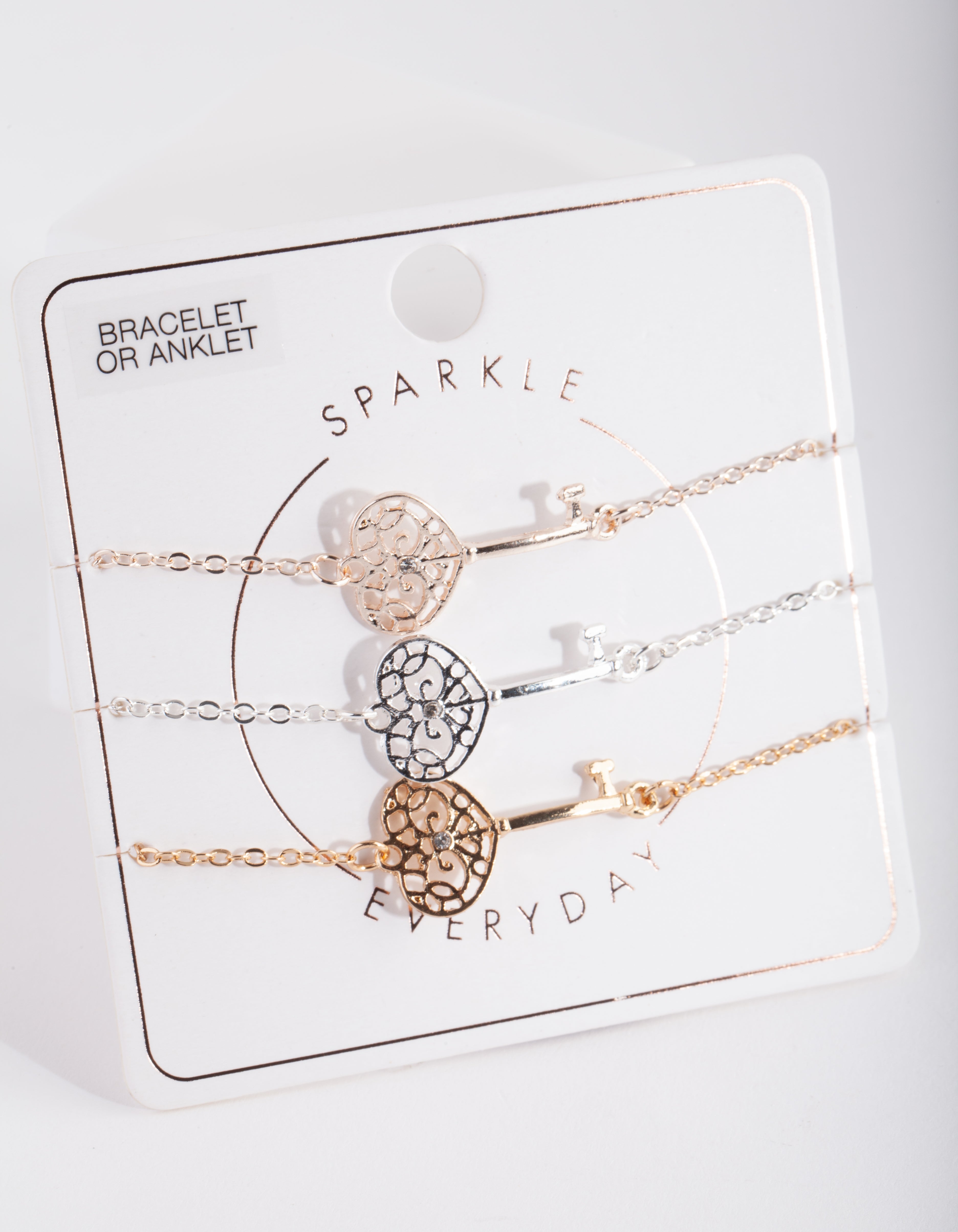 Mixed Metal Filigree Key Bracelet & Anklet Pack