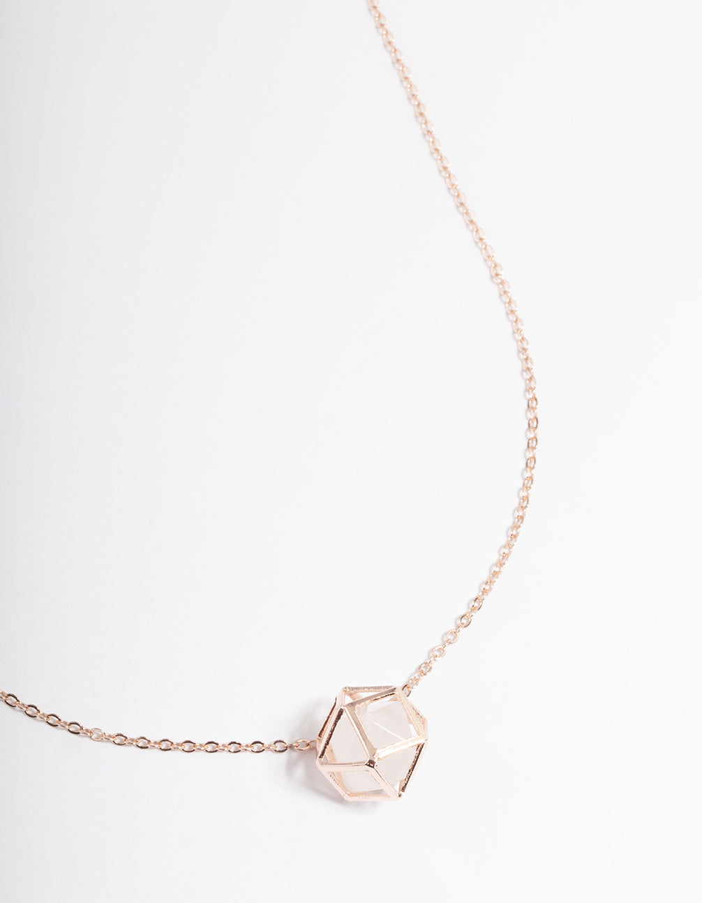 Rose Gold Clear Quartz Shaker Cage Necklace