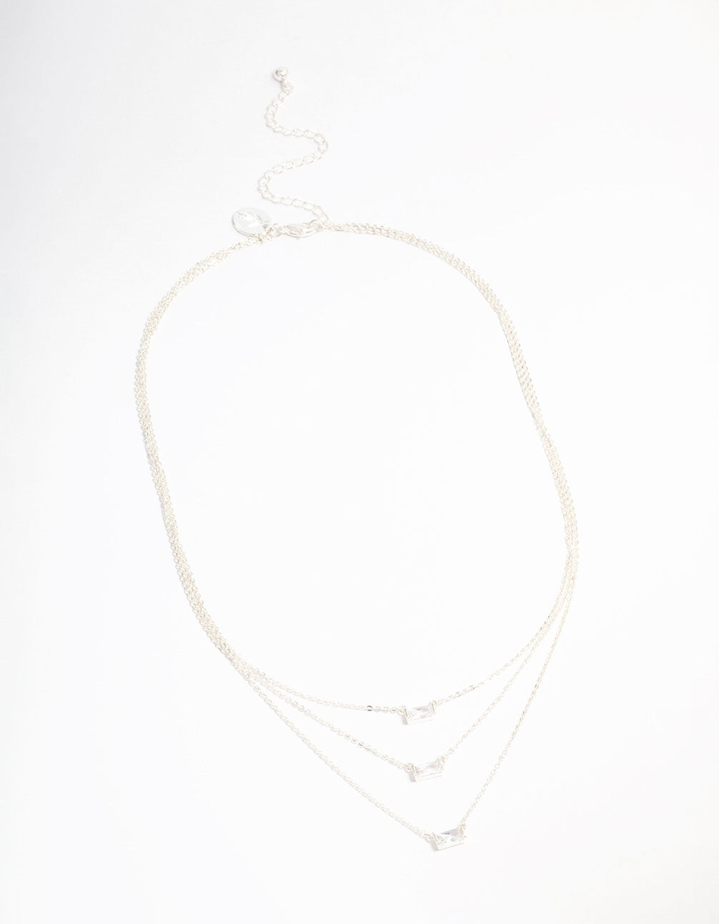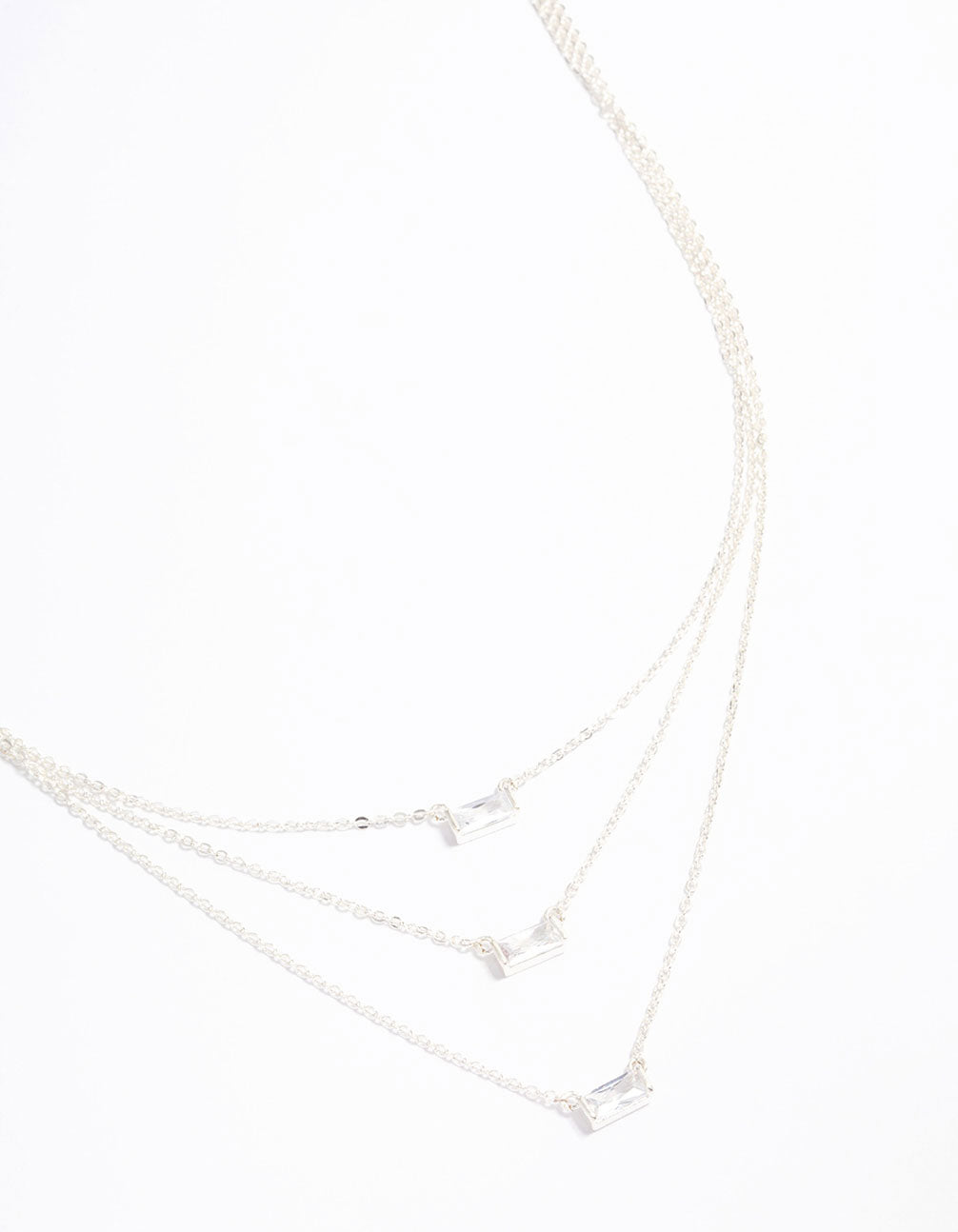 Silver Plated Cubic Zirconia Baguette Layered Necklace
