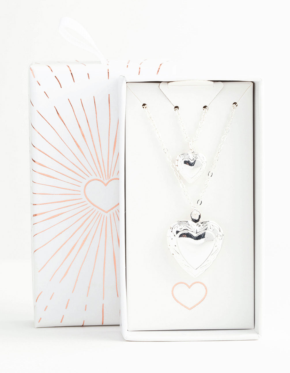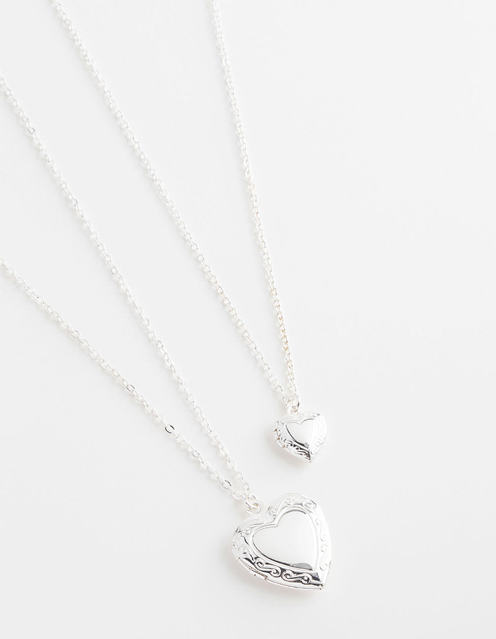 This necklace pack contains two silver pendant necklaces, adorned with intricate heart lockets for a timeless look.