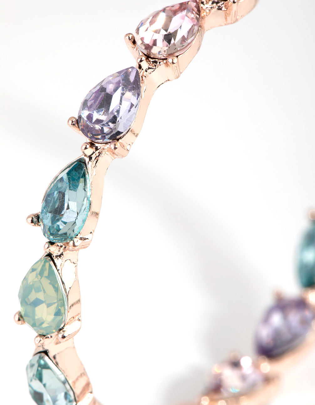 Conjure up visions of South Beach, Miami with these dreamy hoop earrings. They boast a series of pastel diamantes on a rose-gold setting. Wear them with white for a chic look.