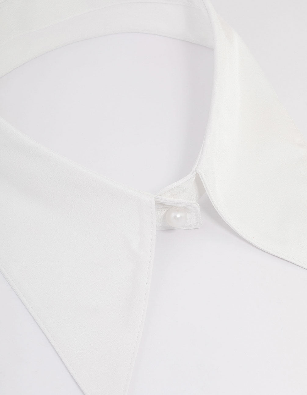 This white fabric collar necklace is a versatile styling piece, perfect for elevating your look. Style this white pointed collar necklace over a knit or t-shirt for a layered appearance.