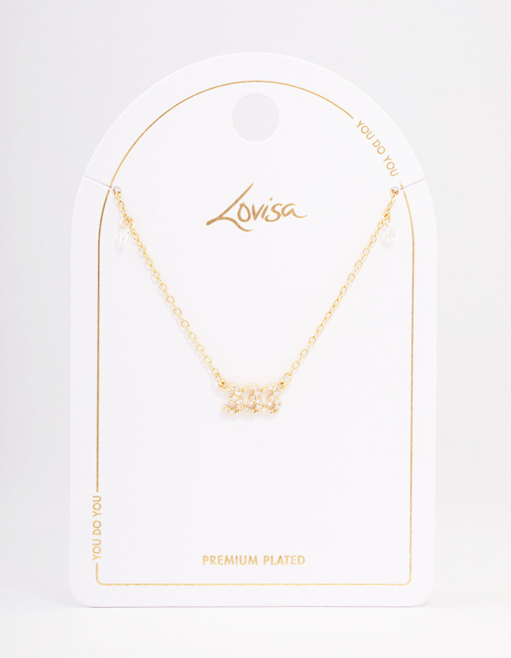 - This signature pendant necklace is plated with real gold and features a dainty '333' angel number charm. Repetitions of 3 are a symbol of support! Wear this pendant necklace each and every day to channel good energy and support into your life.