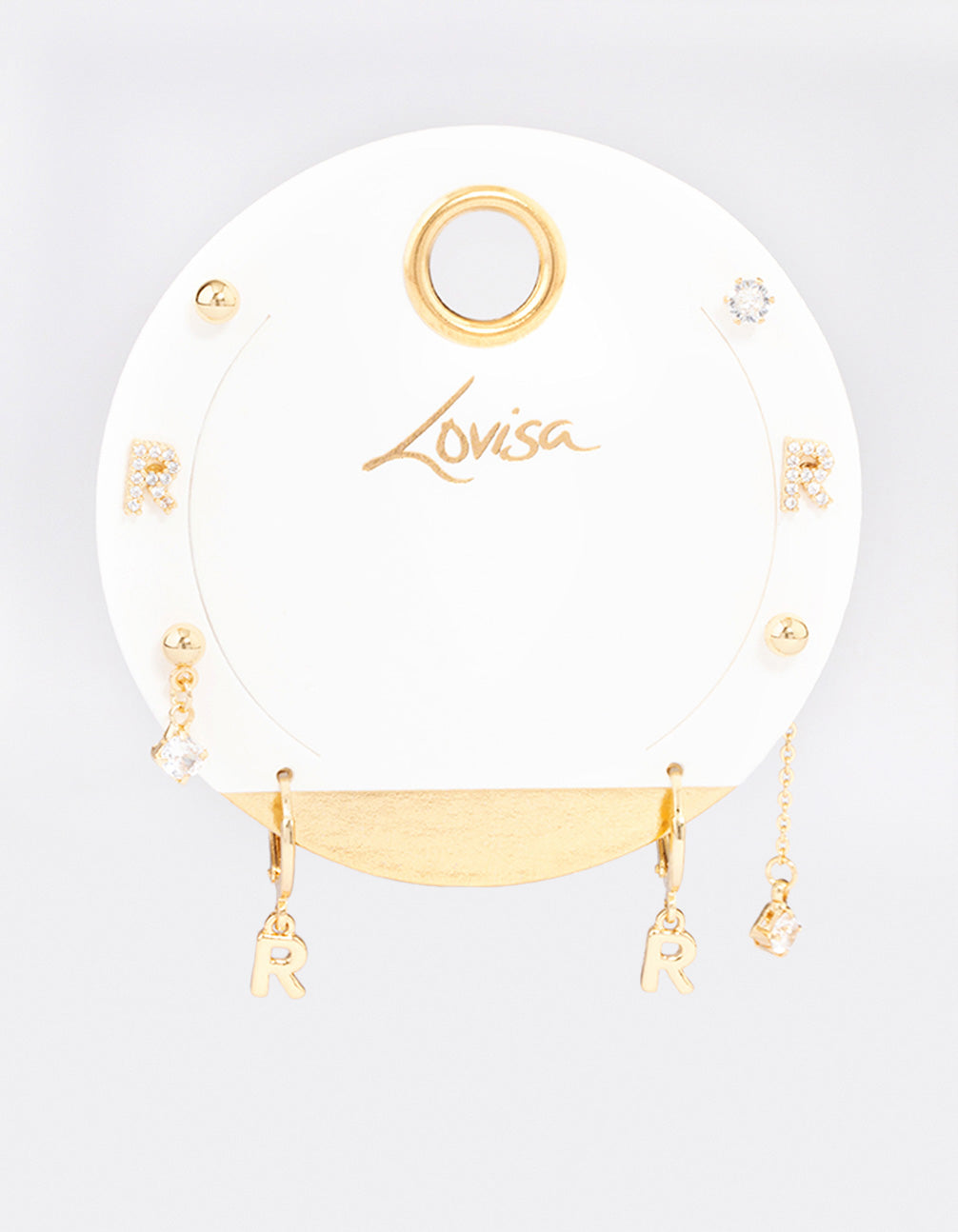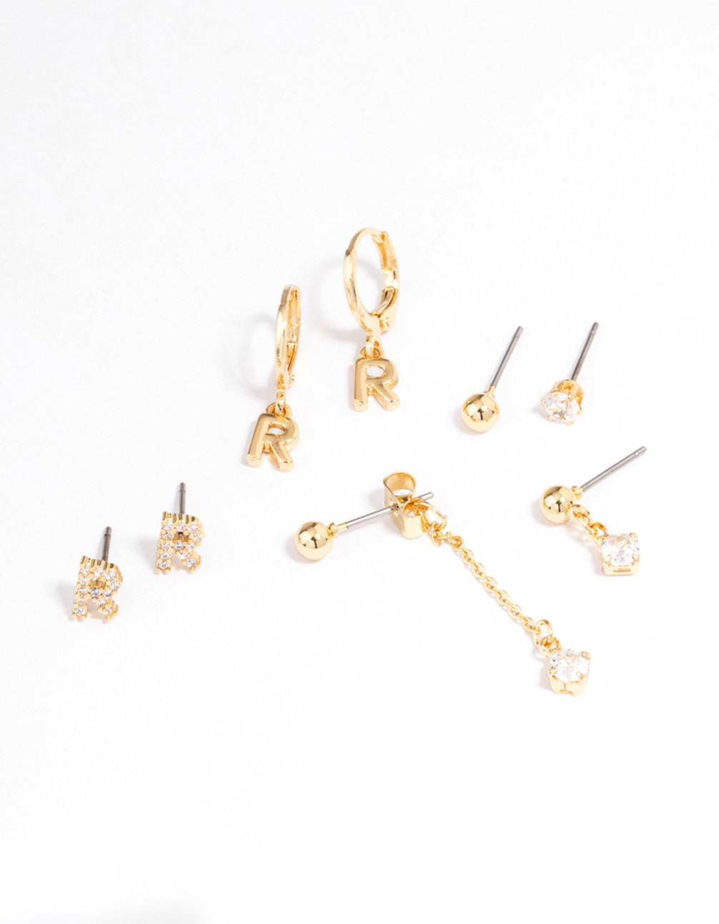 Personalise your ear stack with our collection of Initial Ear Stackers! Sport your initials, the initials of a loved one, or a celebrity crush with our pack of eight individual earrings - including a set of huggie hoops and studs of the letter 'R.'