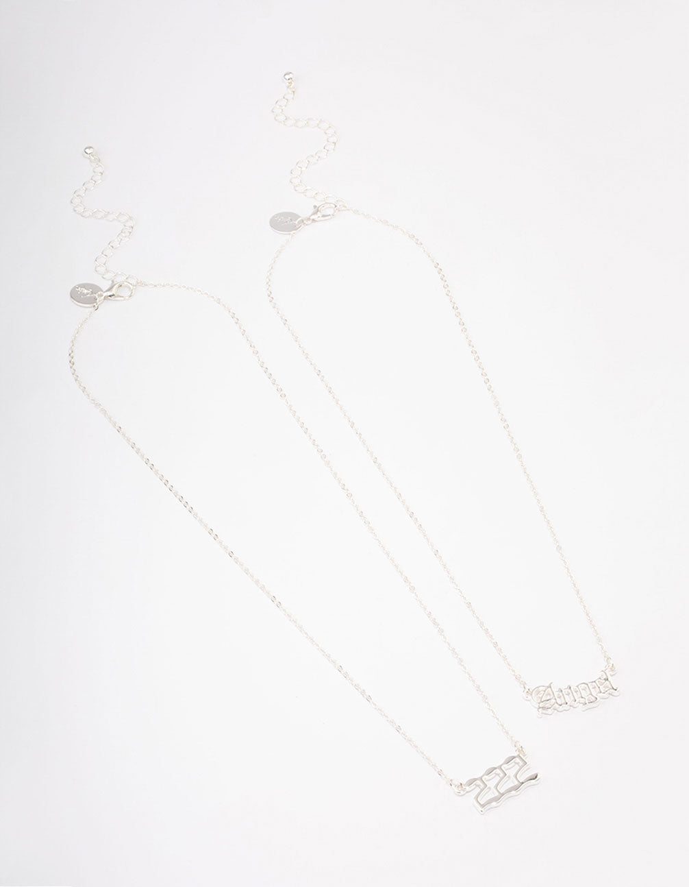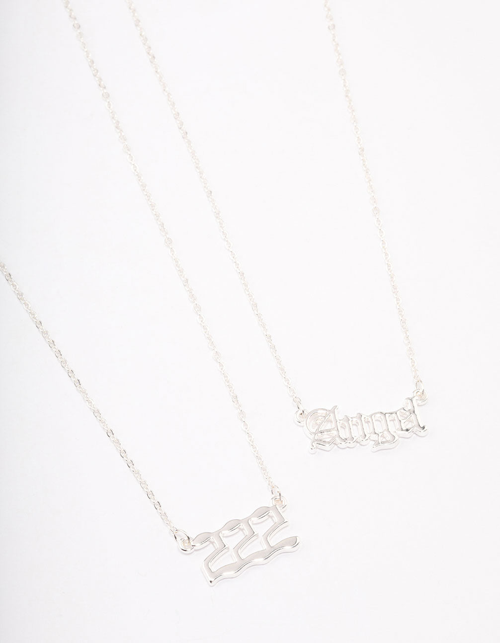 - This silver plated necklace pack features a '222' and 'angel' charm pendant. Repetitions of 2 are a symbol of alignment Wear these necklaces each and every day to channel good energy and alignment into your life.