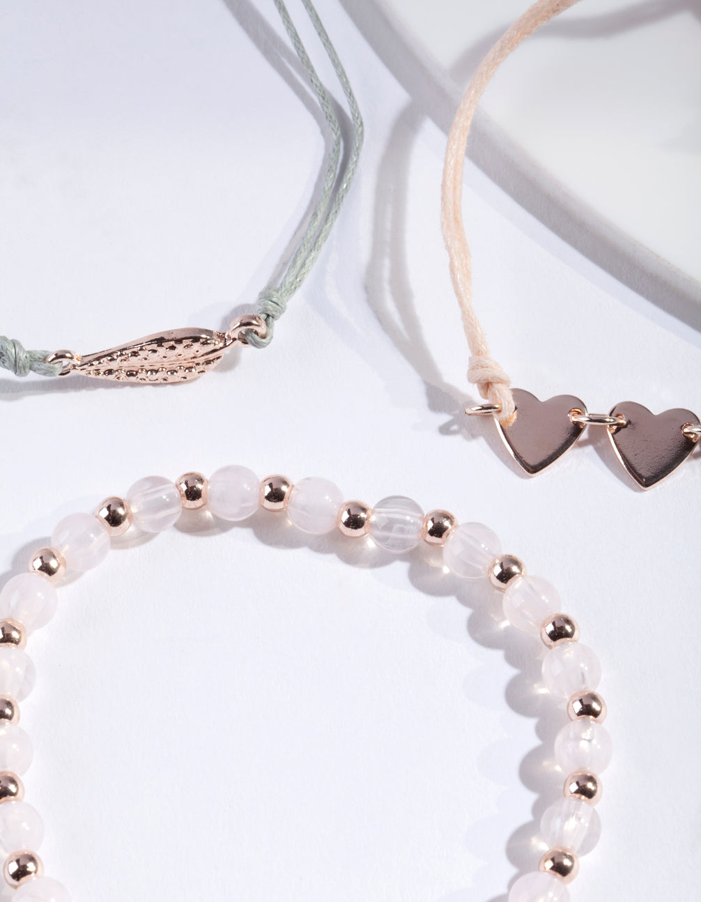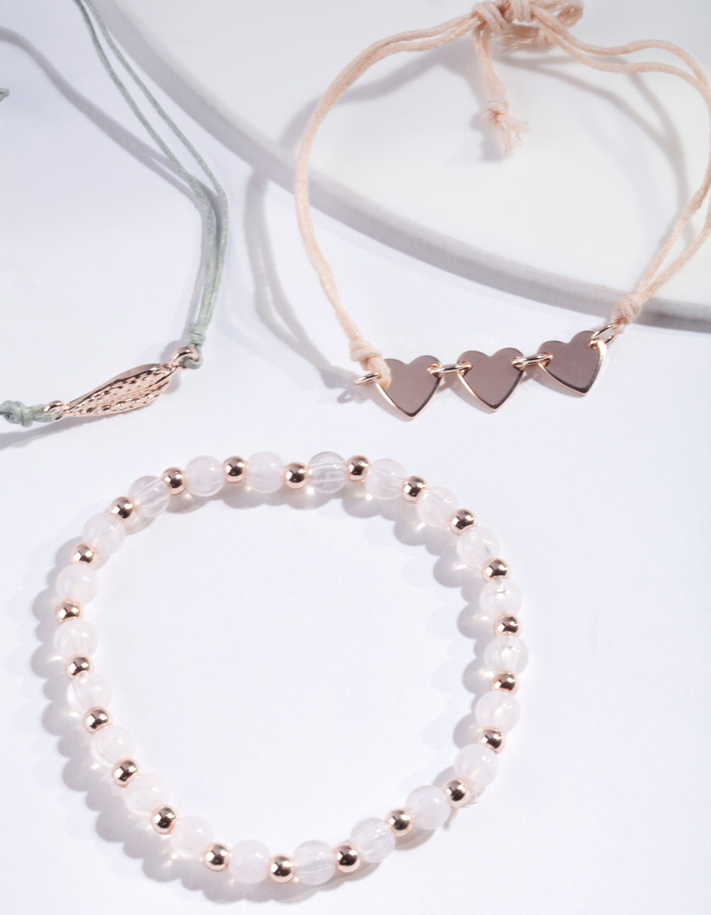 • Rose Gold Leaf Heart & Bead Bracelet Pack - link has visual effect only