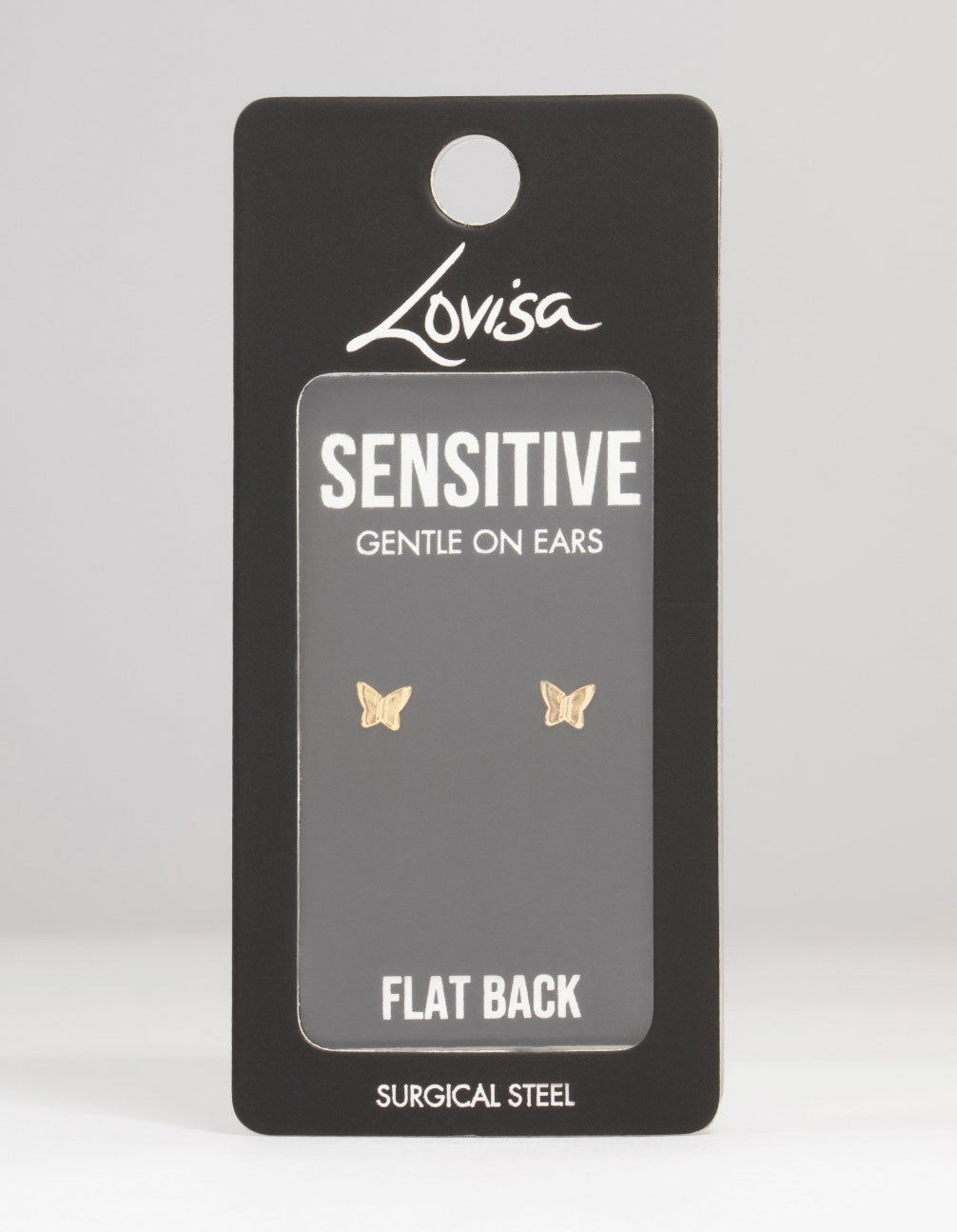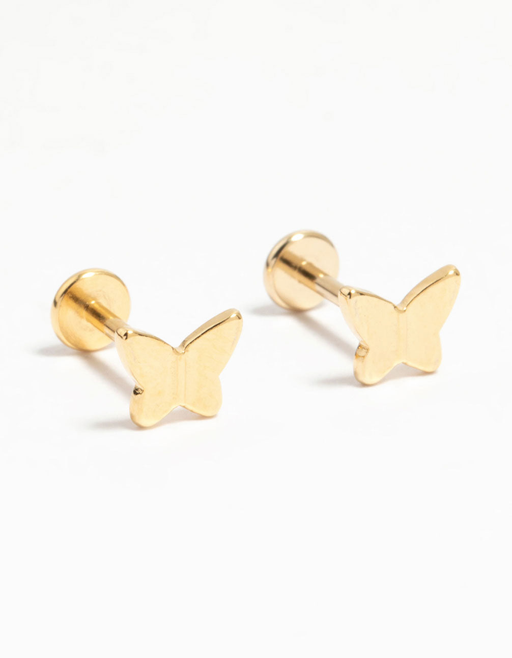 Kids Gold Plated Surgical Steel Butterfly Flat Back Earrings