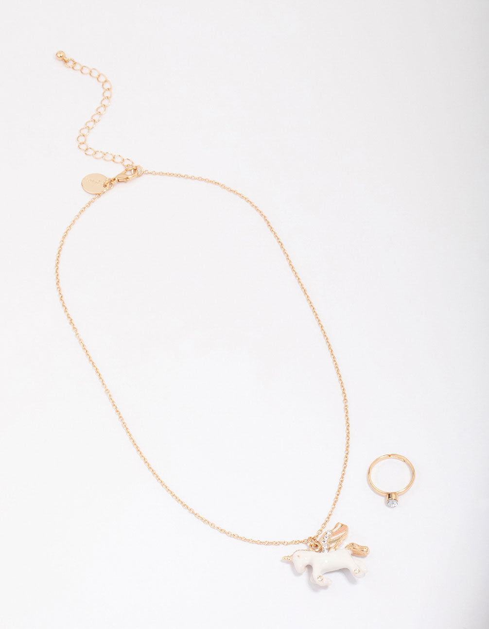 Kids Gold Unicorn Necklace & Ring Jewellery Set
