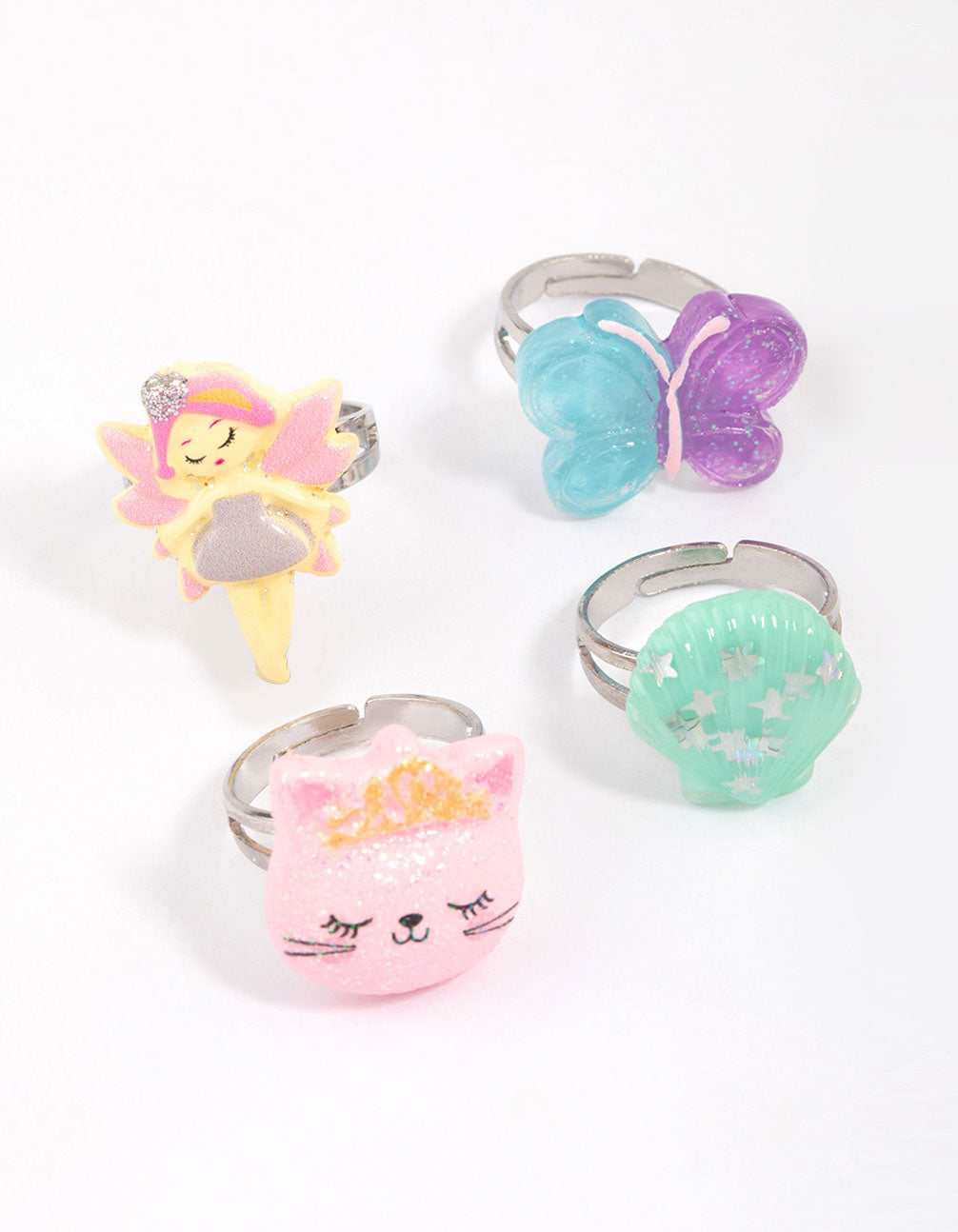 - This ring pack contains six, adjustable stacking rings with a collection of playful charms, including majestic unicorns.