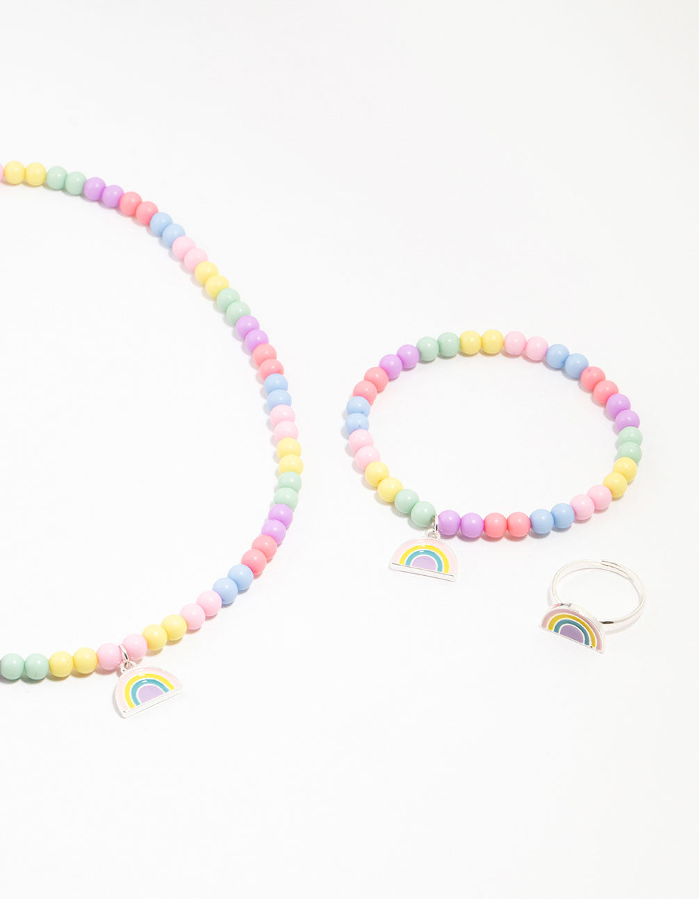 Kids Rainbow Bead Ring, Neck & Bracelet Pack