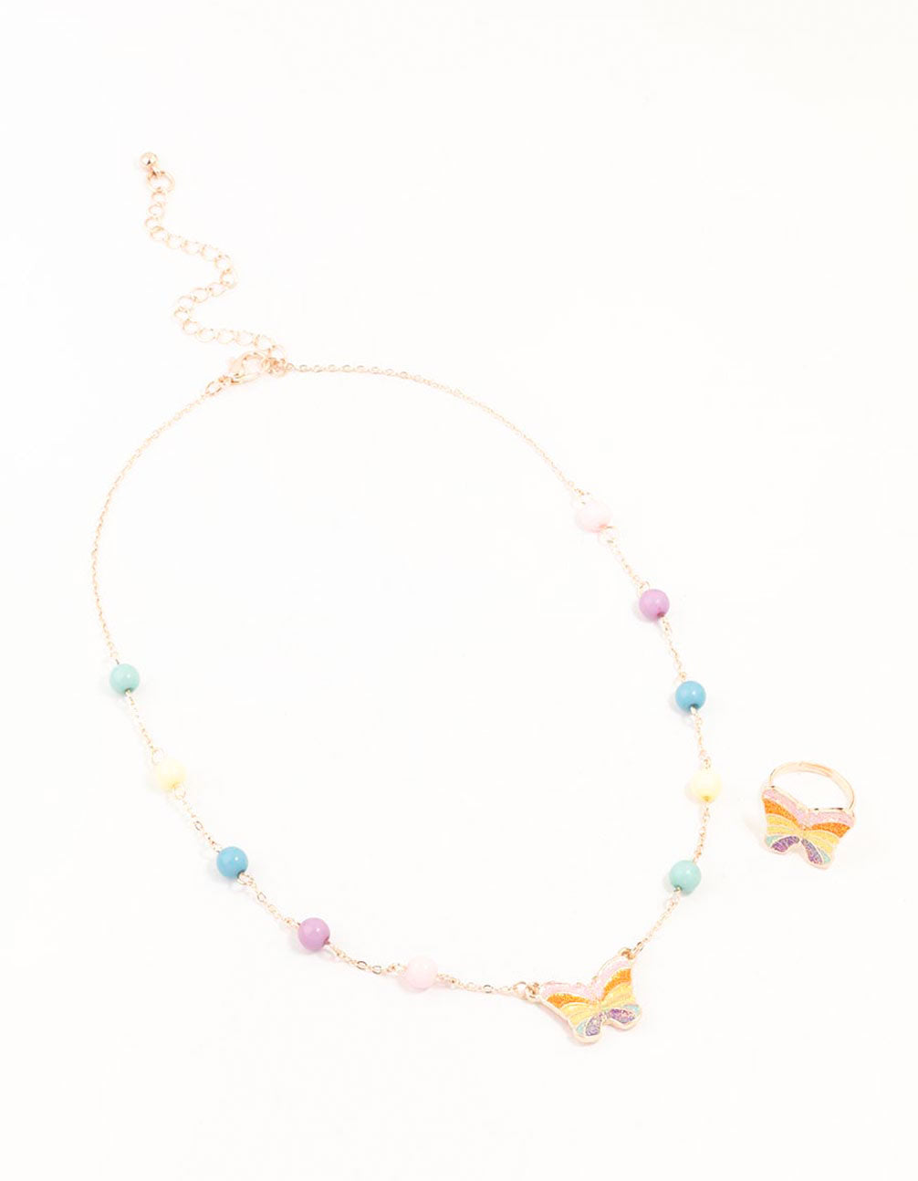 Kids Rainbow Gold Butterfly Necklace & Ring Pack