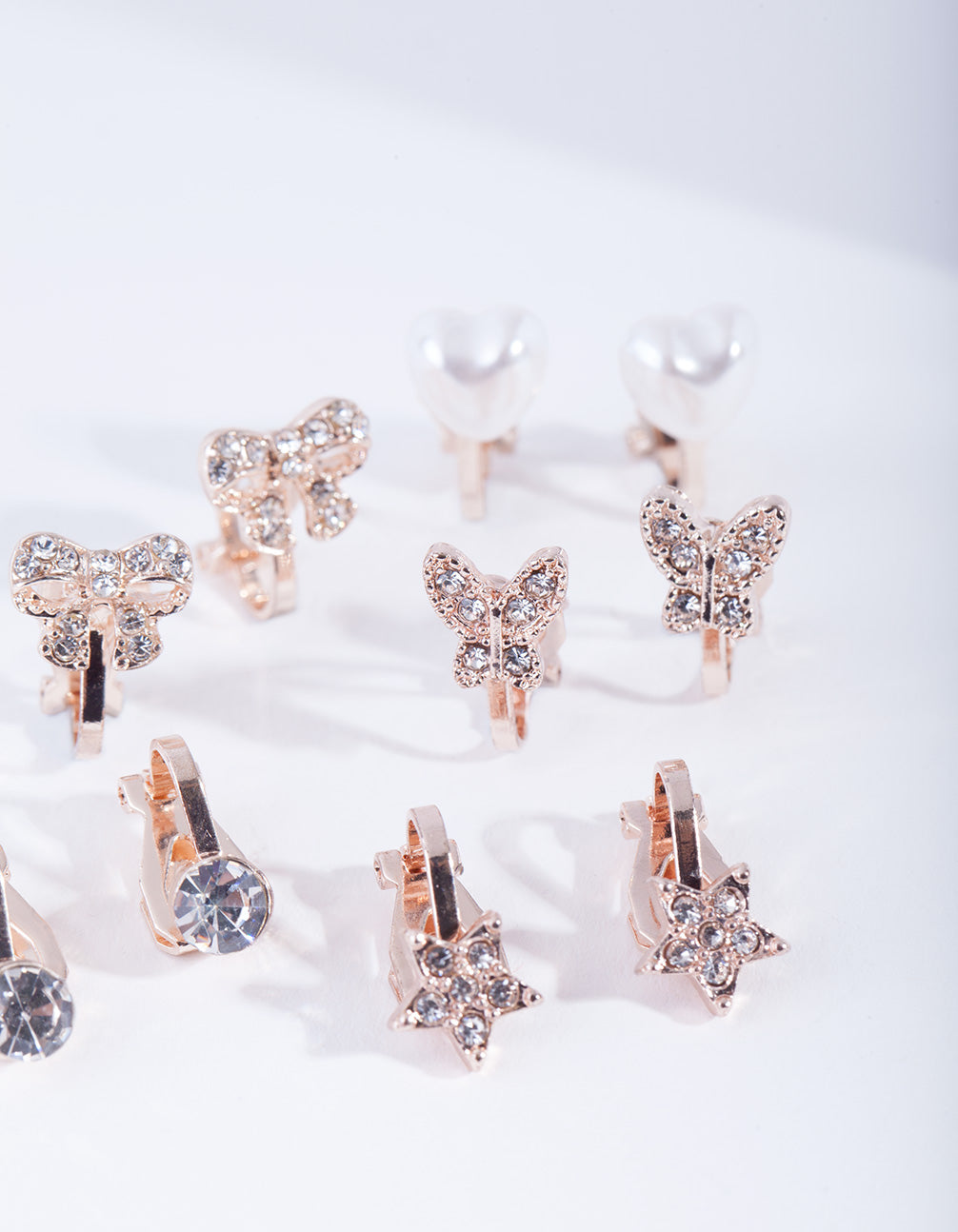Kids Rose Gold Diamante Star Butterfly Heart & Bow Clip On Earring 5-Pack Kids Rose Gold Diamante Star Butterfly Heart & Bow Clip On Earring 5-Pack Kids Rose Gold Diamante Star Butterfly Heart & Bow Clip On Earring 5-Pack