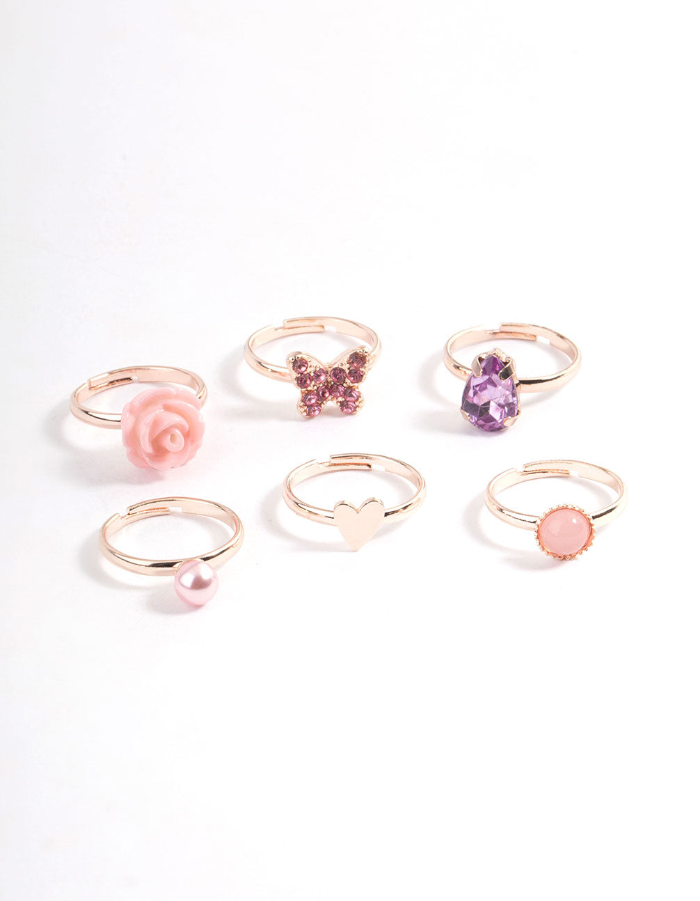Kids Rose Gold Heart Diamante Pear Ring 6-Pack Kids Rose Gold Heart Diamante Pear Ring 6-Pack Kids Rose Gold Heart Diamante Pear Ring 6-Pack