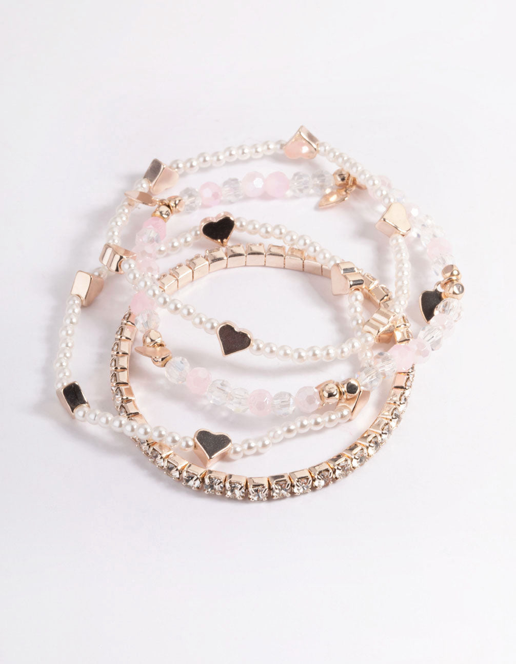 Kids Rose Gold Heart Diamante Stretch Bracelet 4-Pack