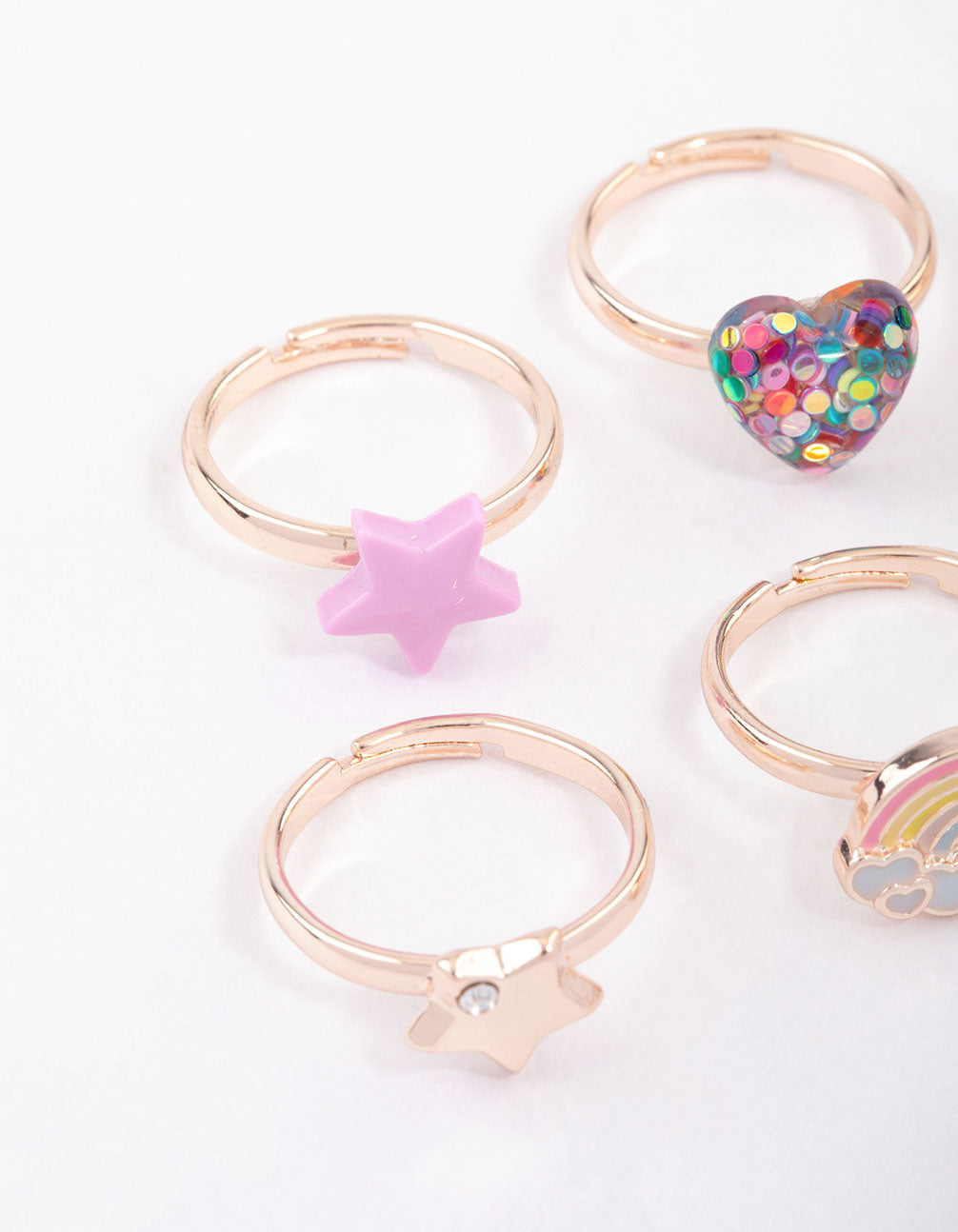 - This ring pack contains six, adjustable stacking rings with star and sea motifs for a playful touch.