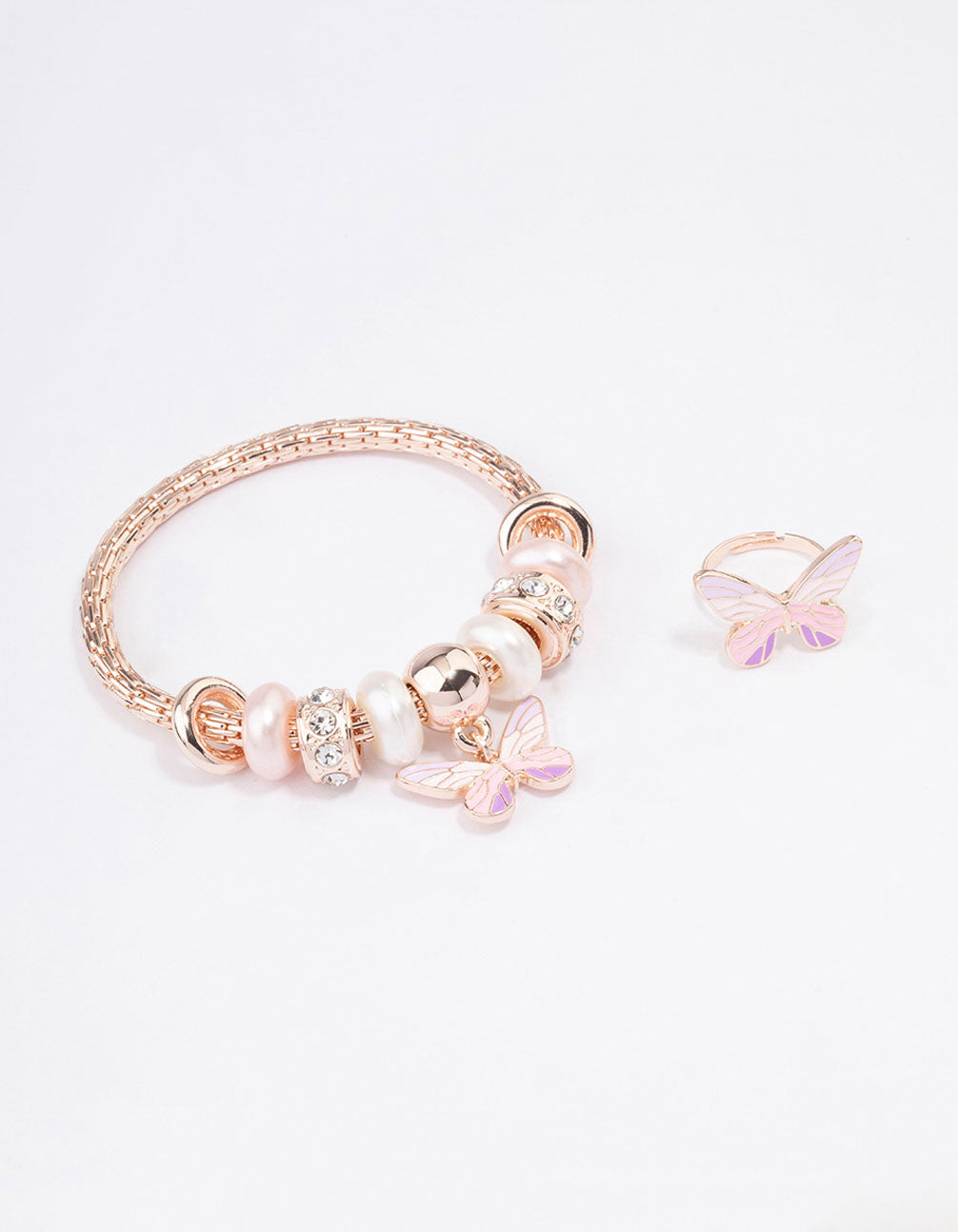 Kids Rose Gold Stretch Glitter Butterfly Bracelet & Ring Set