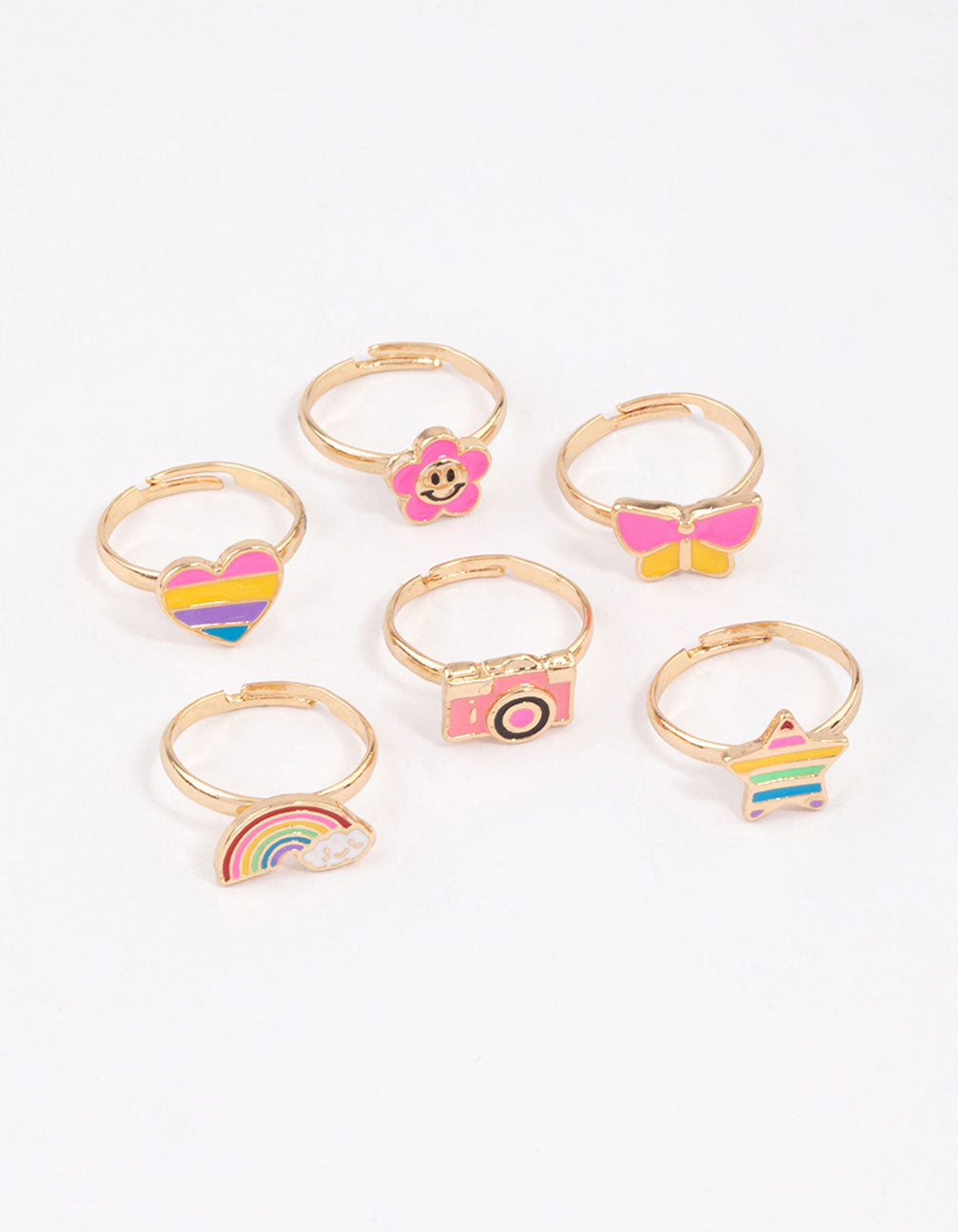 - This ring pack contains six, adjustable stacking rings with a collection of rainbow accents for a colourful and playful look.