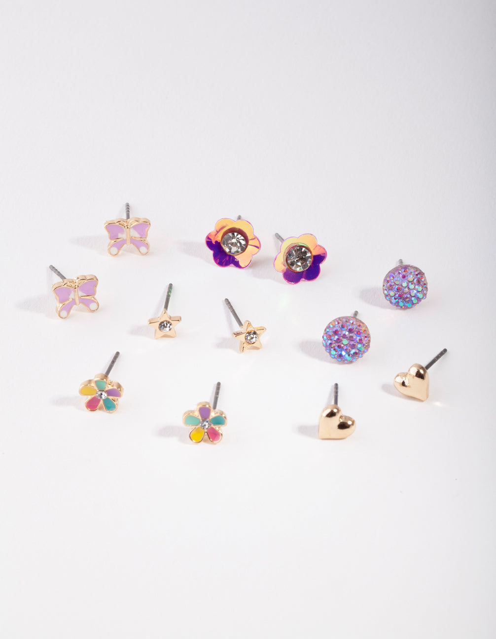 The Lovisa Kids collection is designed for little ones with big imaginations. This stud earring pack features a variety of multicoloured flower garden designs in a gold-tone.