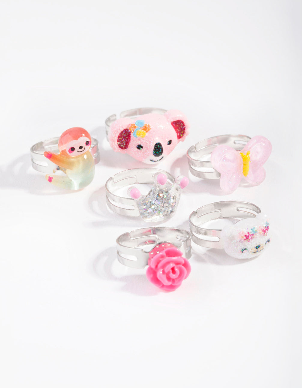 The Lovisa Kids collection is designed for little ones with big imaginations. This ring pack features a sloth and koala design in a silver-tone.