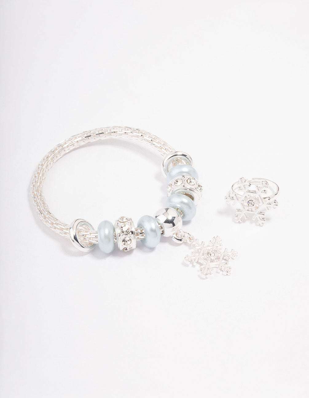 Kids Silver Christmas Snowflake Bracelet & Ring Pack