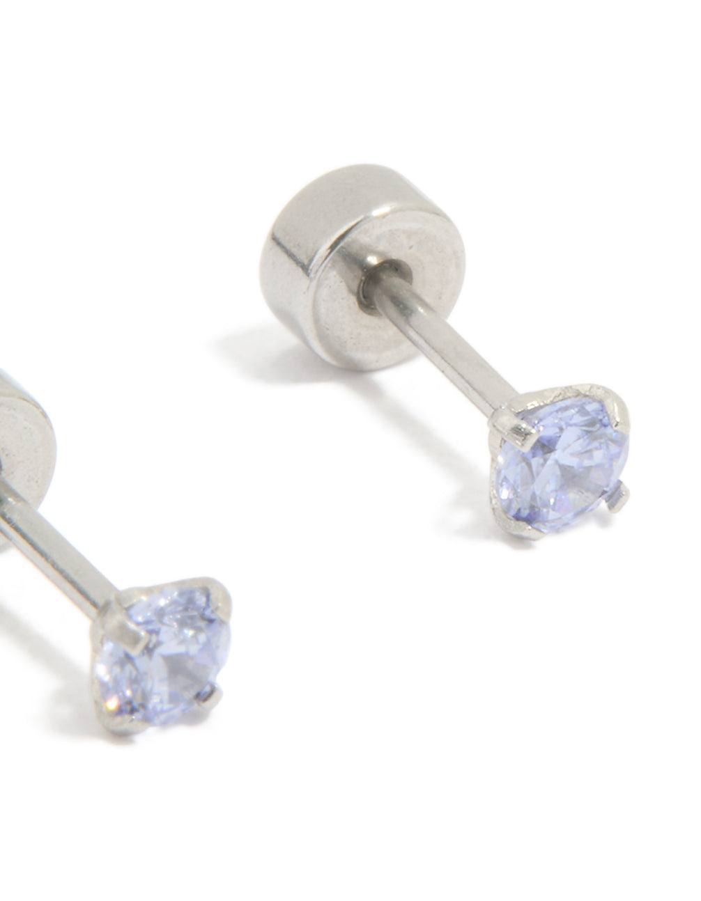 Kids Surgical Steel Cubic Zirconia Flat Back Earrings