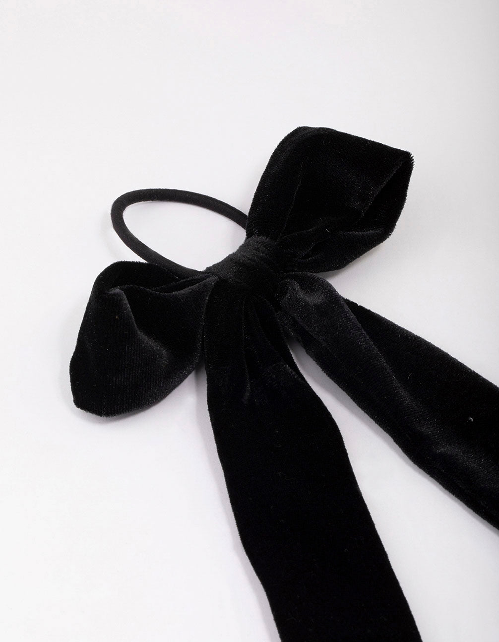 This simple hair tie features a large, black velvet ribbon — perfect for elevating your hairstyle.