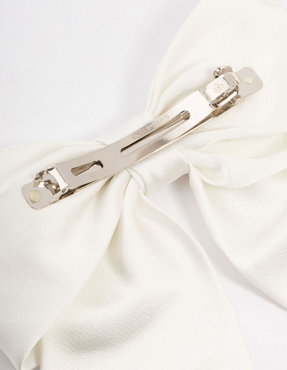 Add flirty trending flair to your bridal look with this chic double-bow hair clip. Crafted from luxurious draped fabric, its oversized bows style is perfect for making a charming hair statement on your big day.