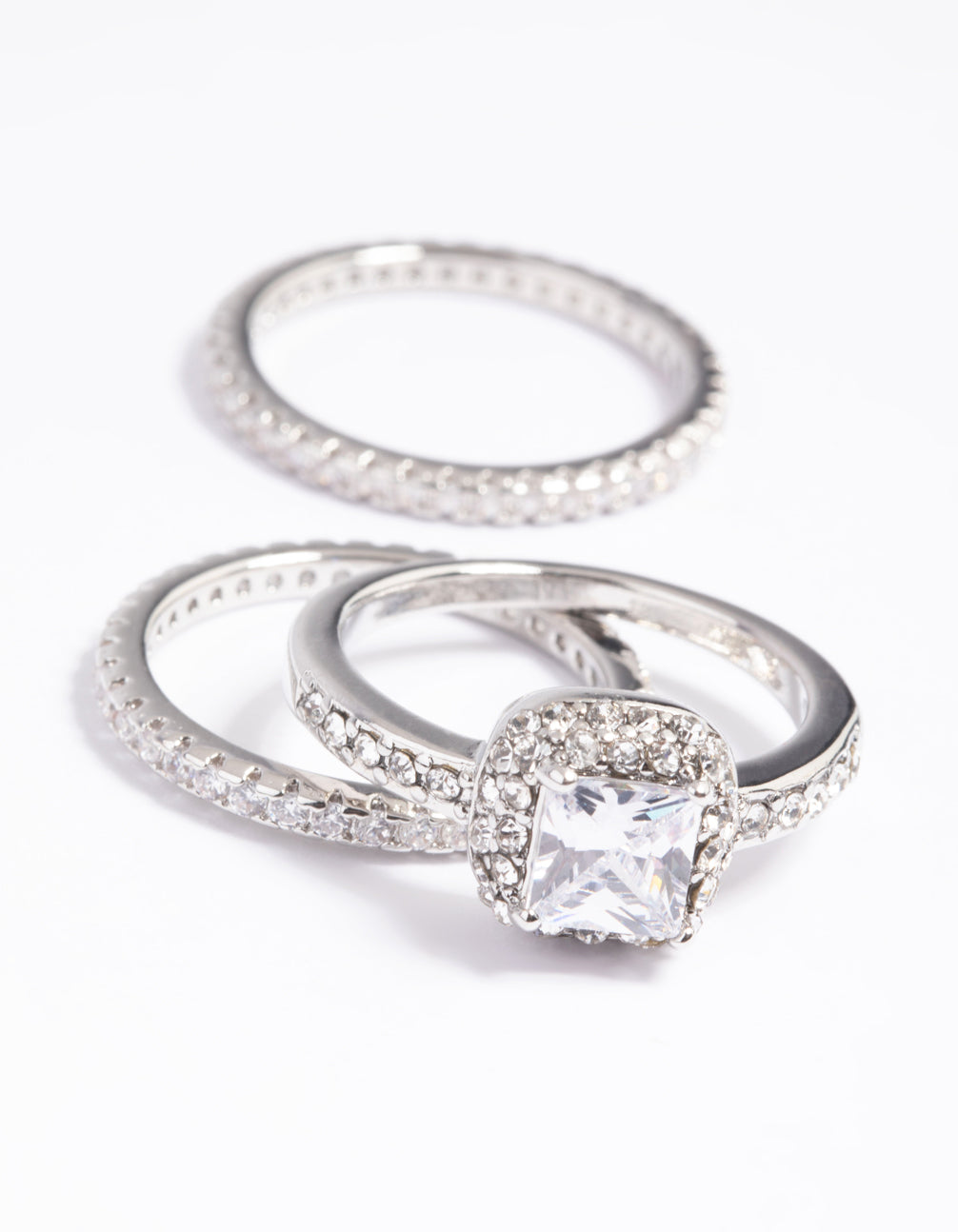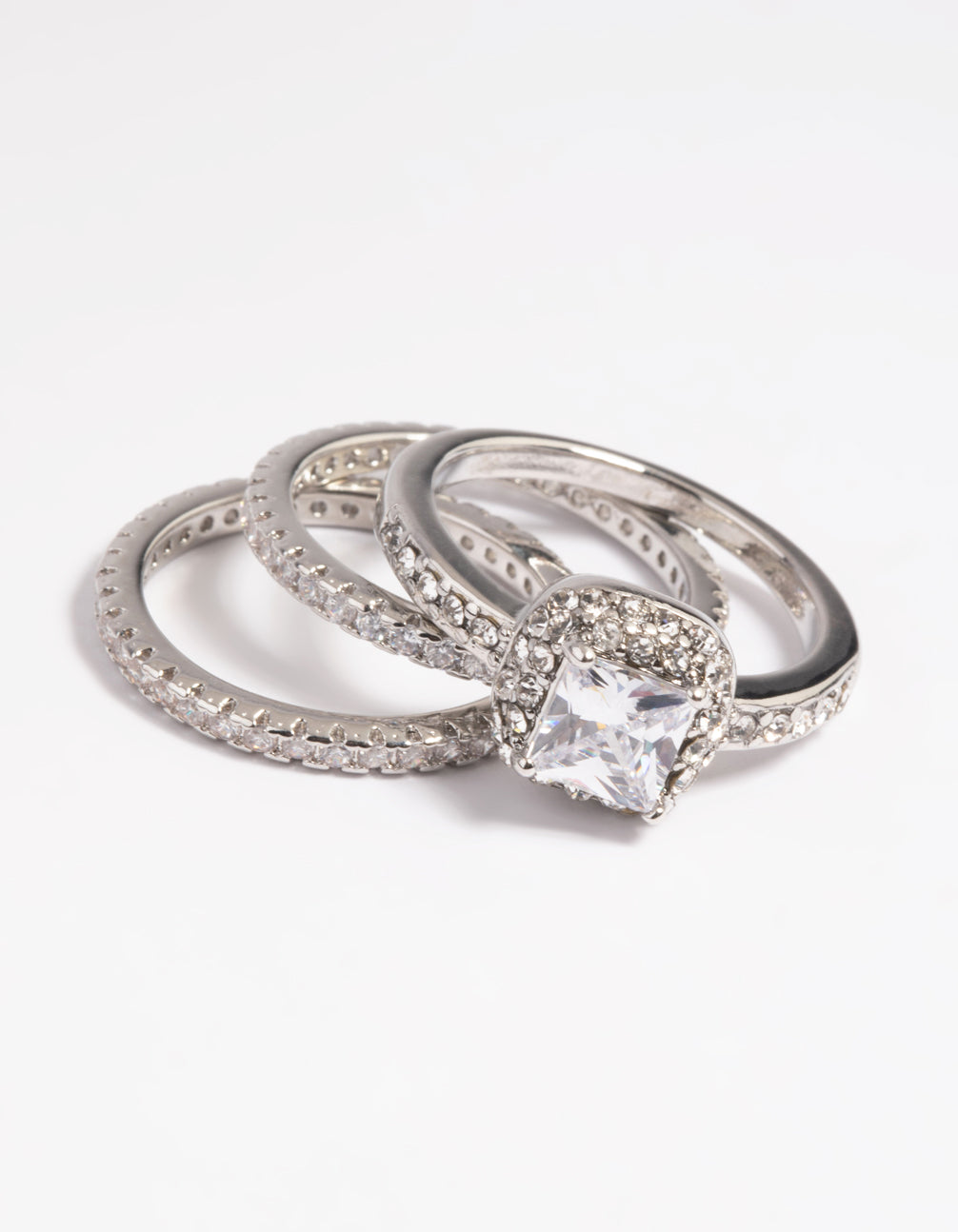 Silver Diamond Simulant Square Ring Pack