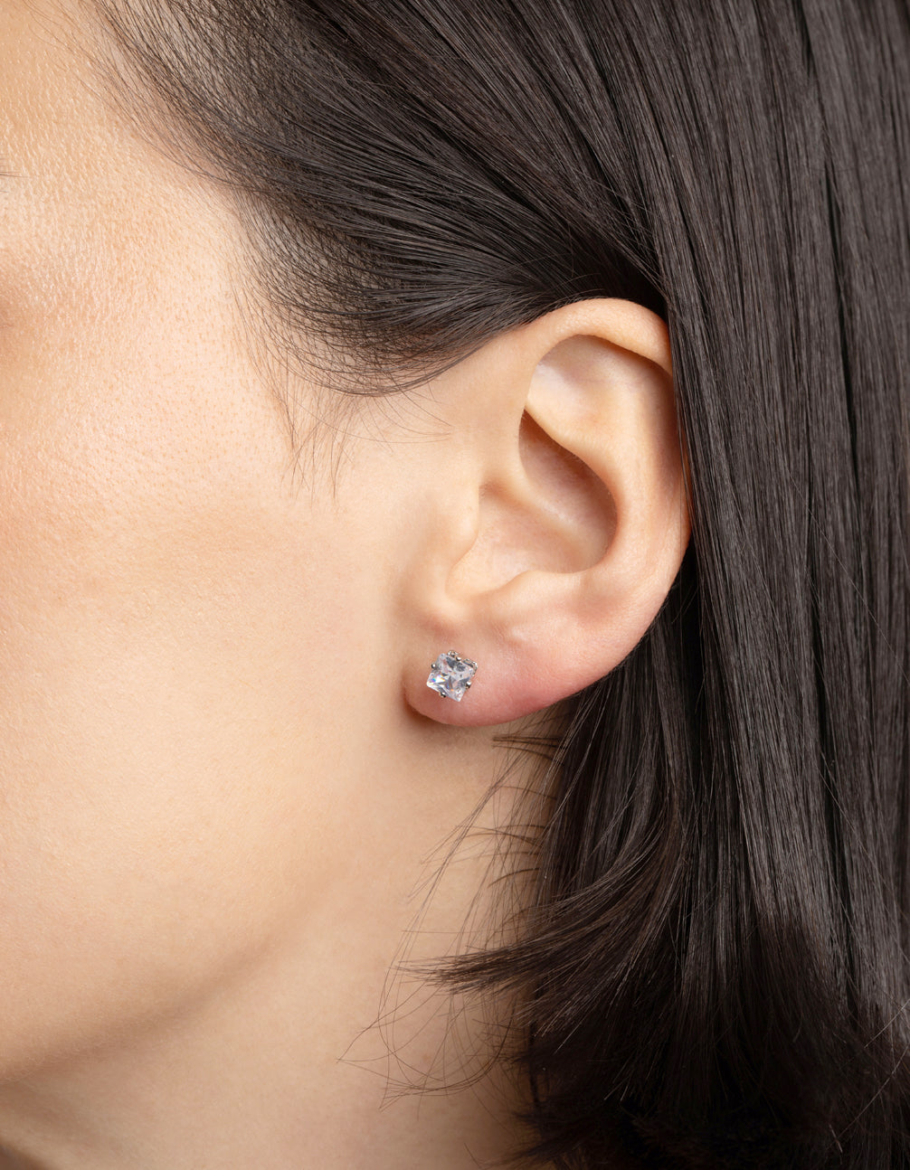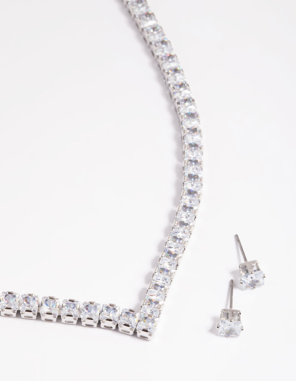 Silver Diamond Simulant Square Necklace & Earrings Set