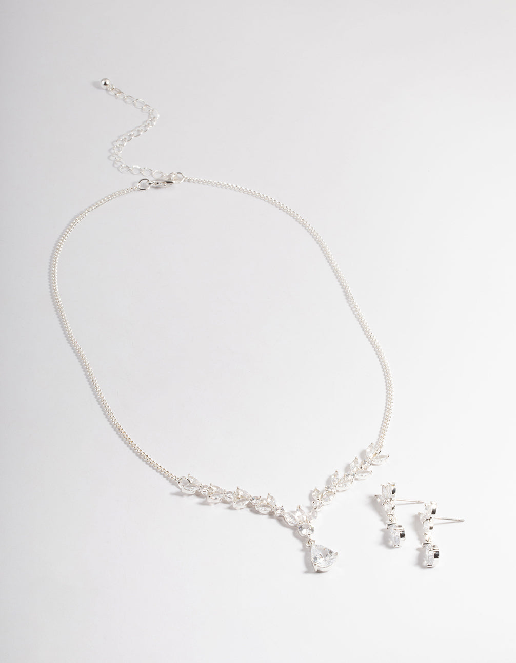 Rhodium Diamond Simulant Teardrop Fan Earring & Necklace Set