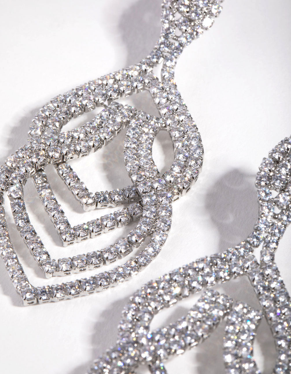 Sparkle and shine with a pair of statement earrings. These silver-toned earrings boast a pear shaped drop, adorned with diamond simulants that are cut to replicate the look of a true diamond. Perfect for adding a glamorous finishing touch to your evening ensembles!
