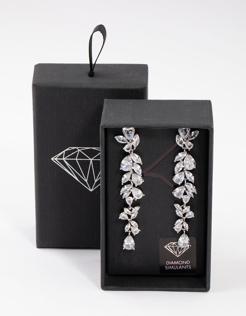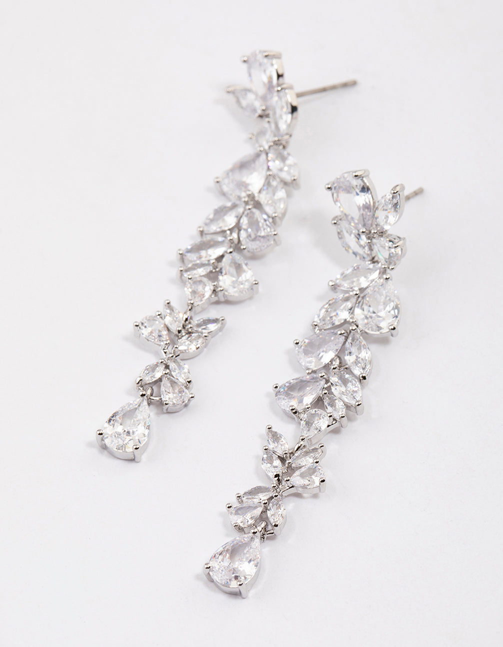 These stunning, silver-toned earrings feature an array of petal-shaped crystals, formed in a vine formation for a look inspired by nature.
