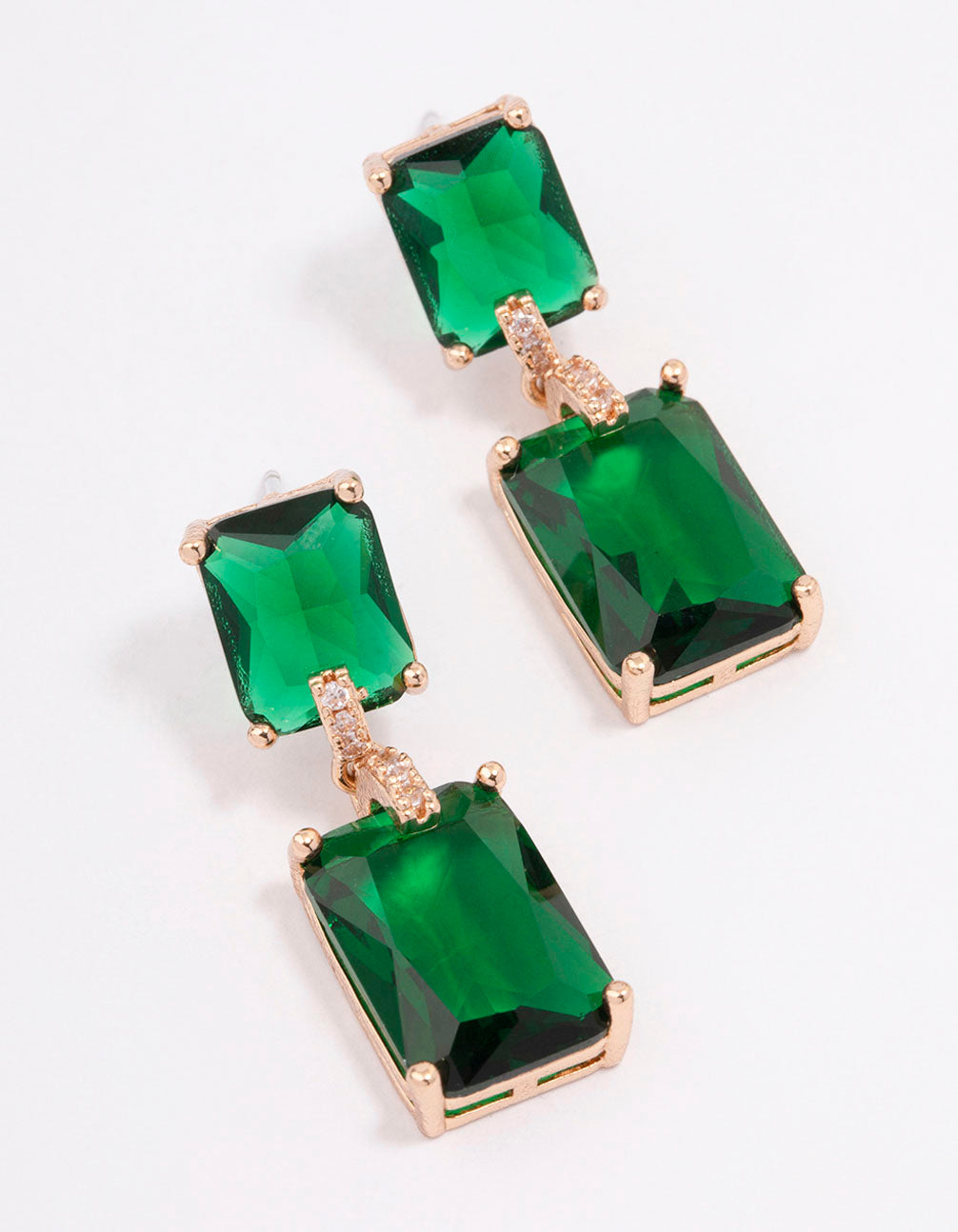 - These sophisticated drop earrings feature a gorgeous gold setting with radiant emerald-coloured crystals for a glamorous look.