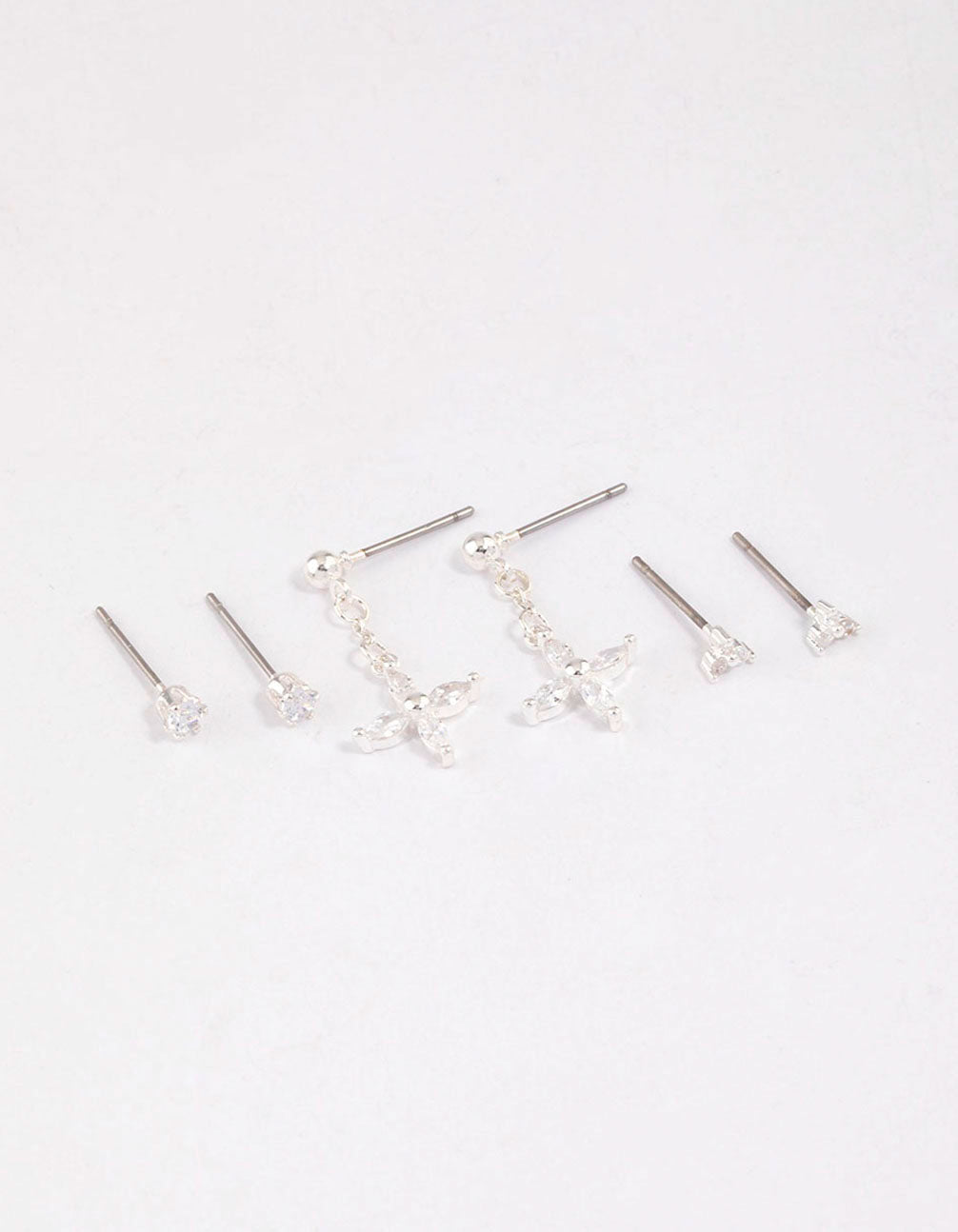 Silver Plated Brass Cubic Zirconia Drop Flower Earring 6-Pack