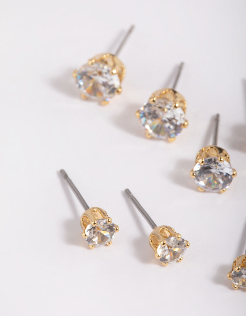 Gold Plated Brass Cubic Zirconia Ascending Earring Stack 8-Pack