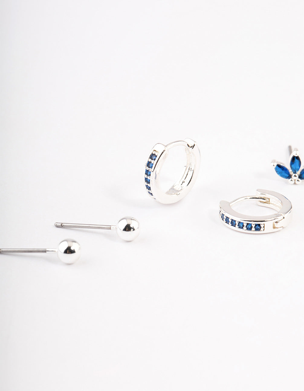 Silver Plated Brass Cubic Zirconia Marquise Stud & Huggie Earrings Pack