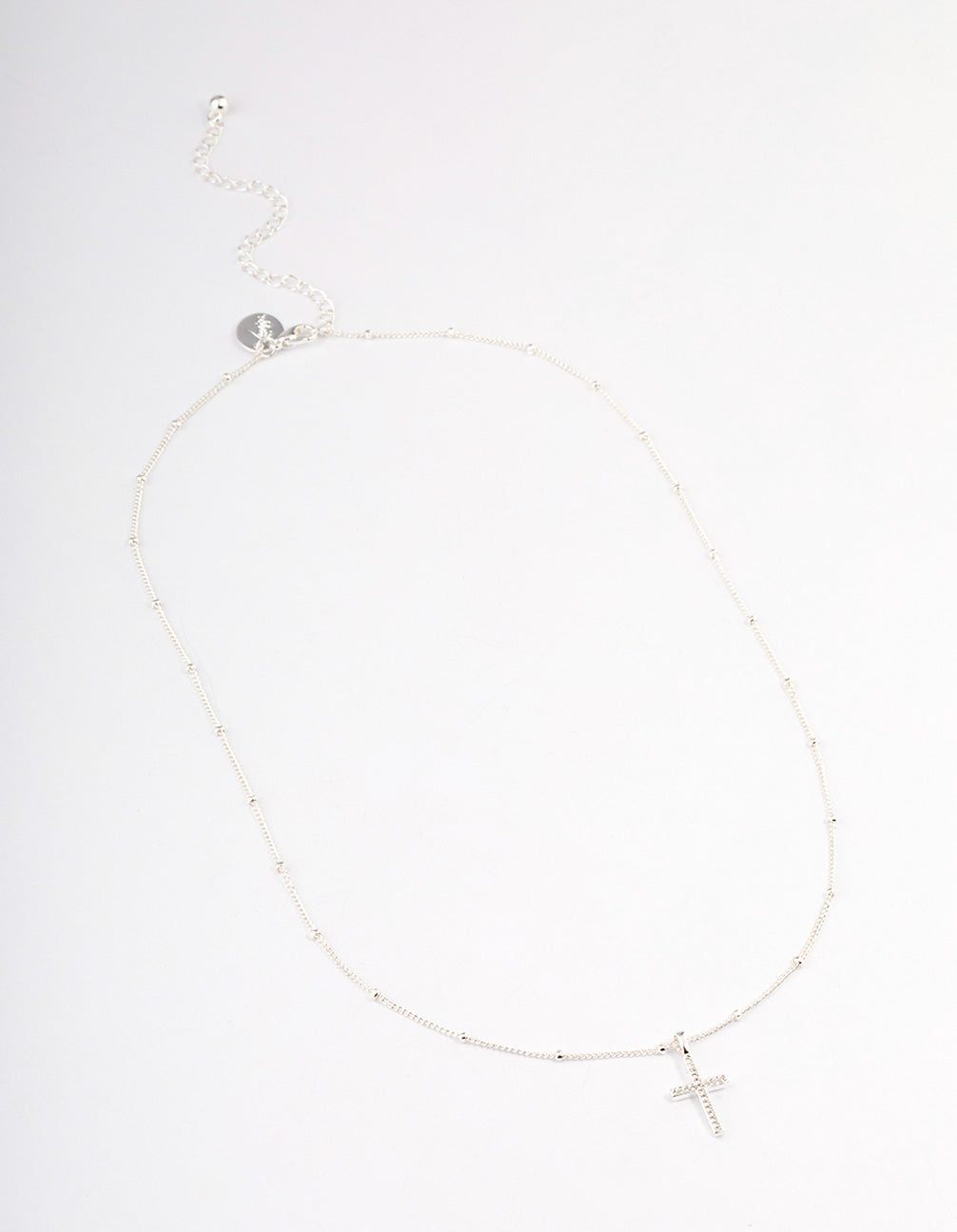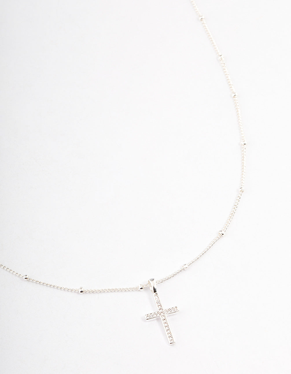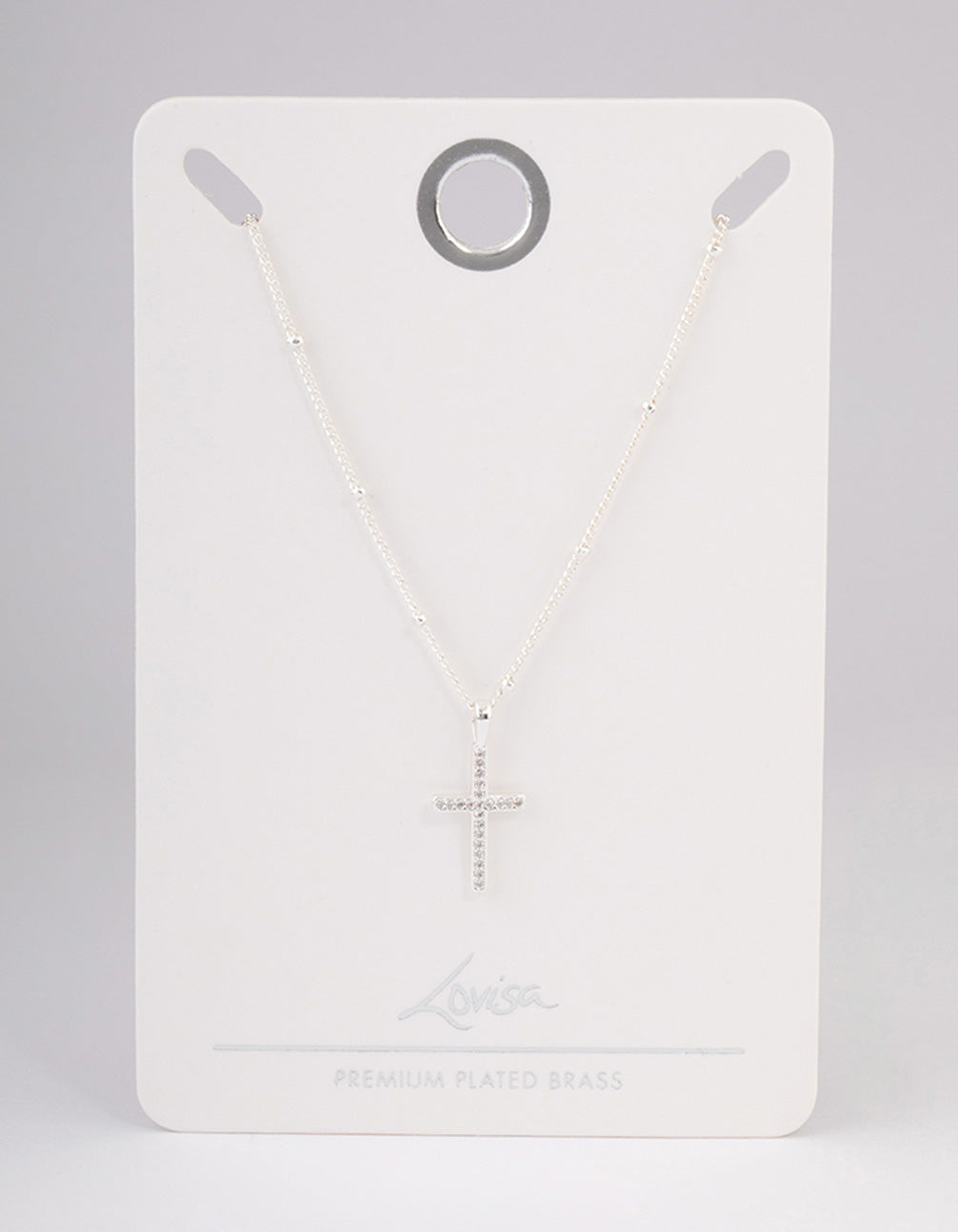 Silver Plated Brass Cubic Zirconia Pave Cross Necklace