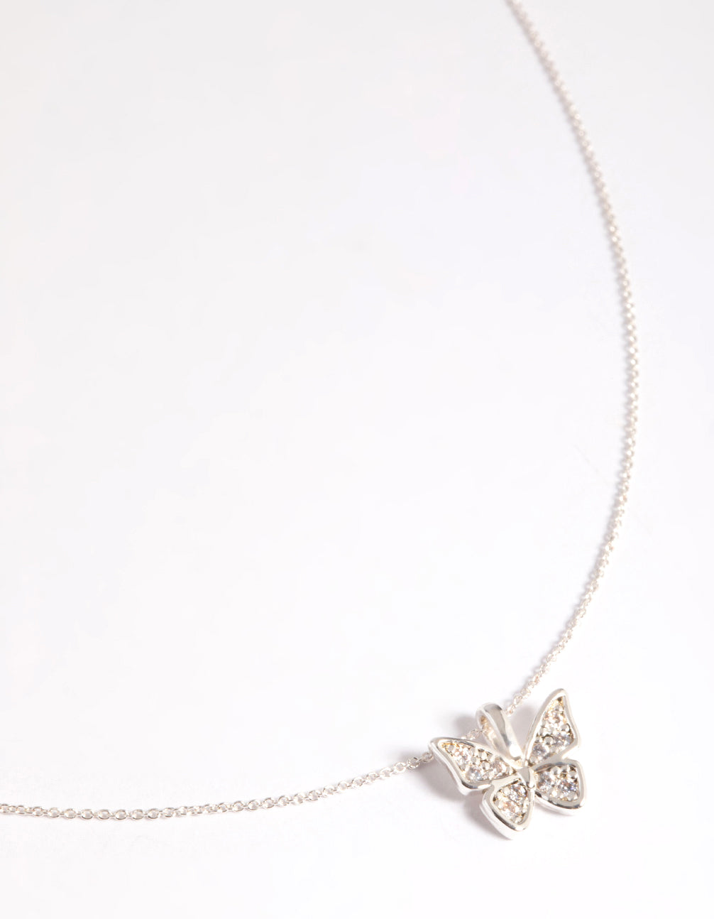 Silver Plated Pave Butterfly Necklace
